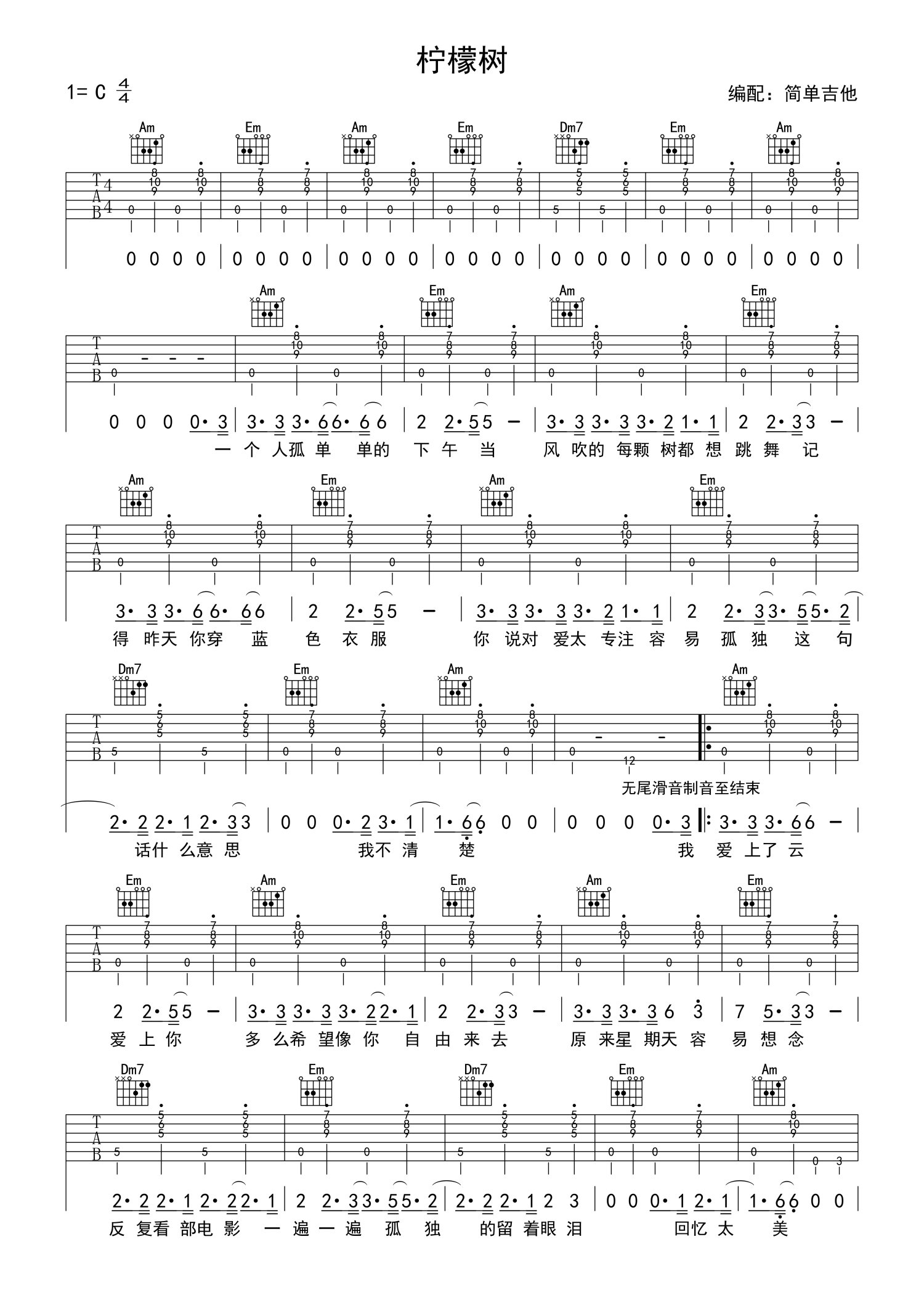 曲谱介绍: 柠檬树吉他谱 苏慧伦 C调高清谱_简单吉他版