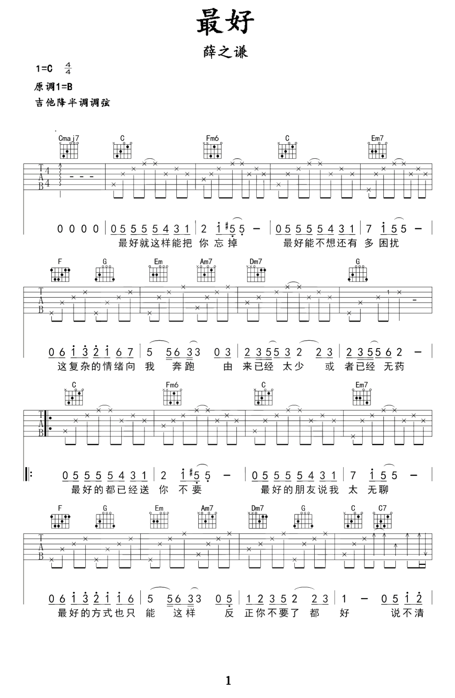 最好吉他谱 - 薛之谦 - C调吉他弹唱谱