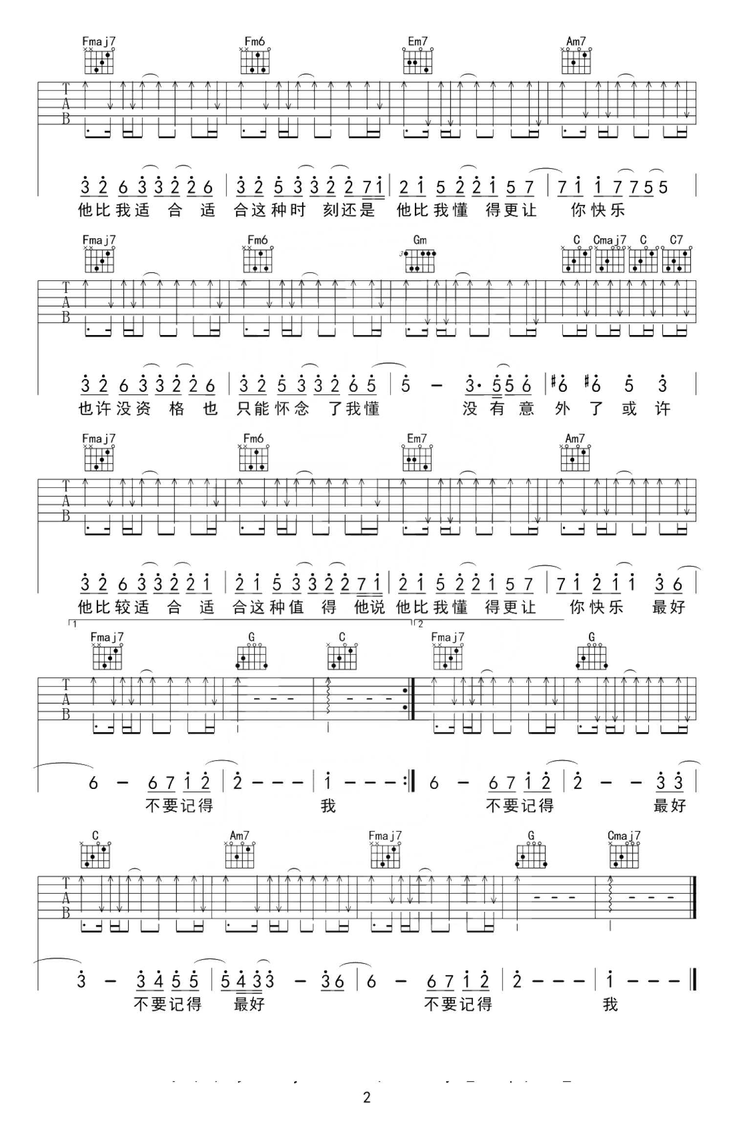 吉他弹唱C调来源:垂耳吉他2014 浏览2018-12-14 15:11发布图谱共2页