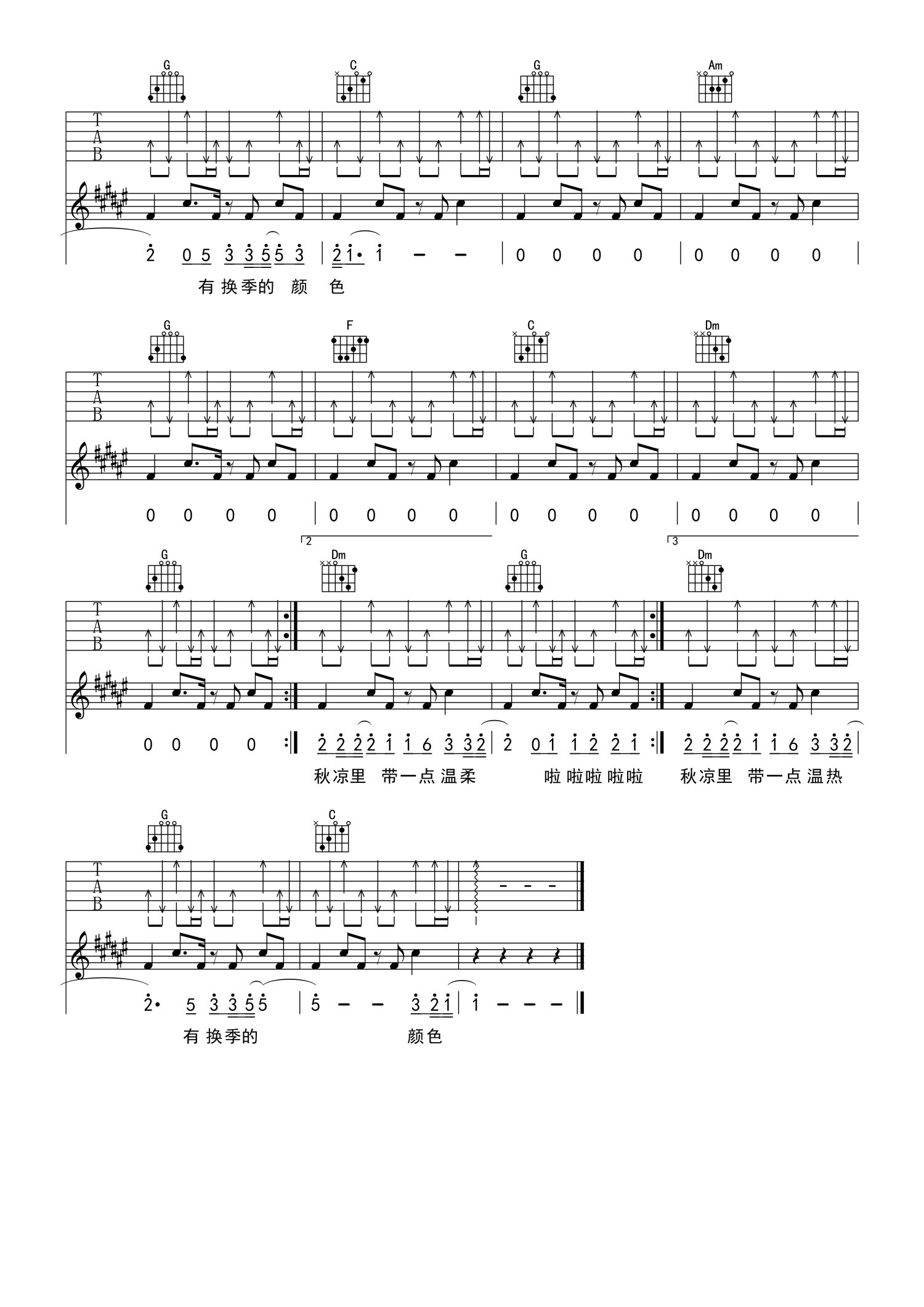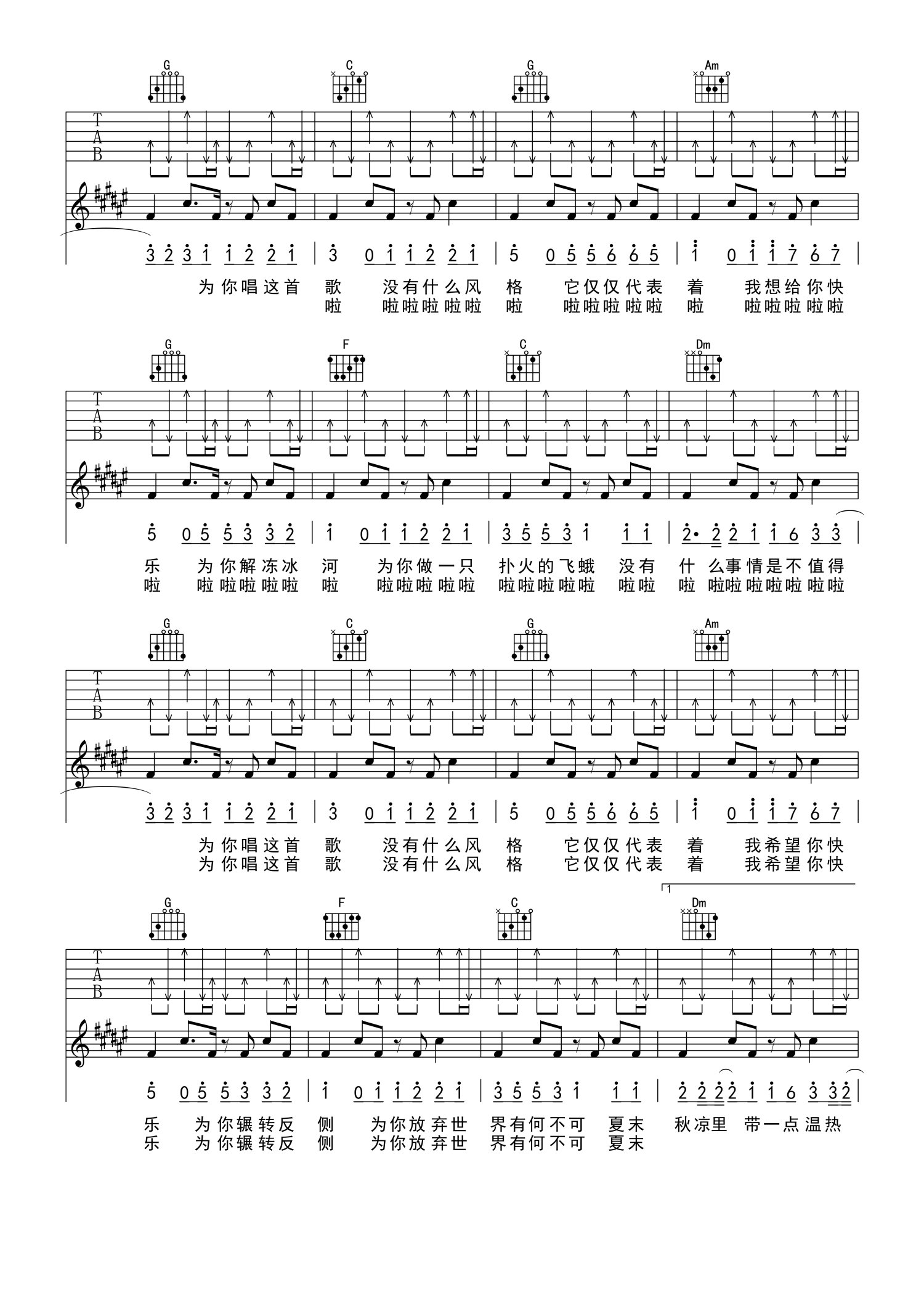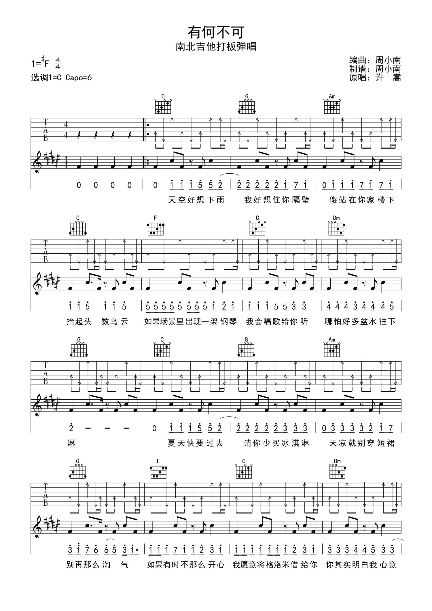 曲谱介绍: 许嵩《有何不可》吉他谱_C调吉他弹唱谱_打板弹唱热身版