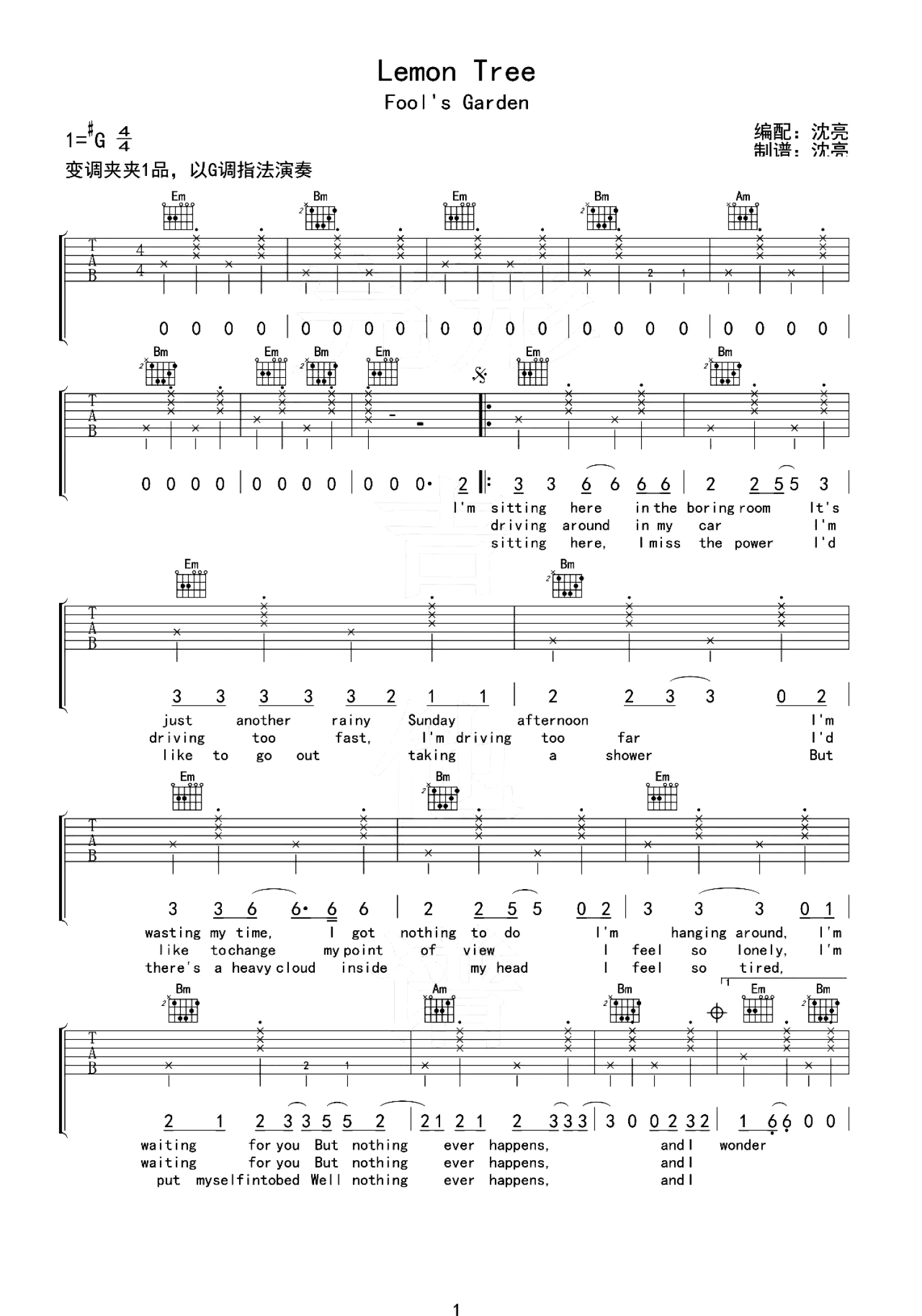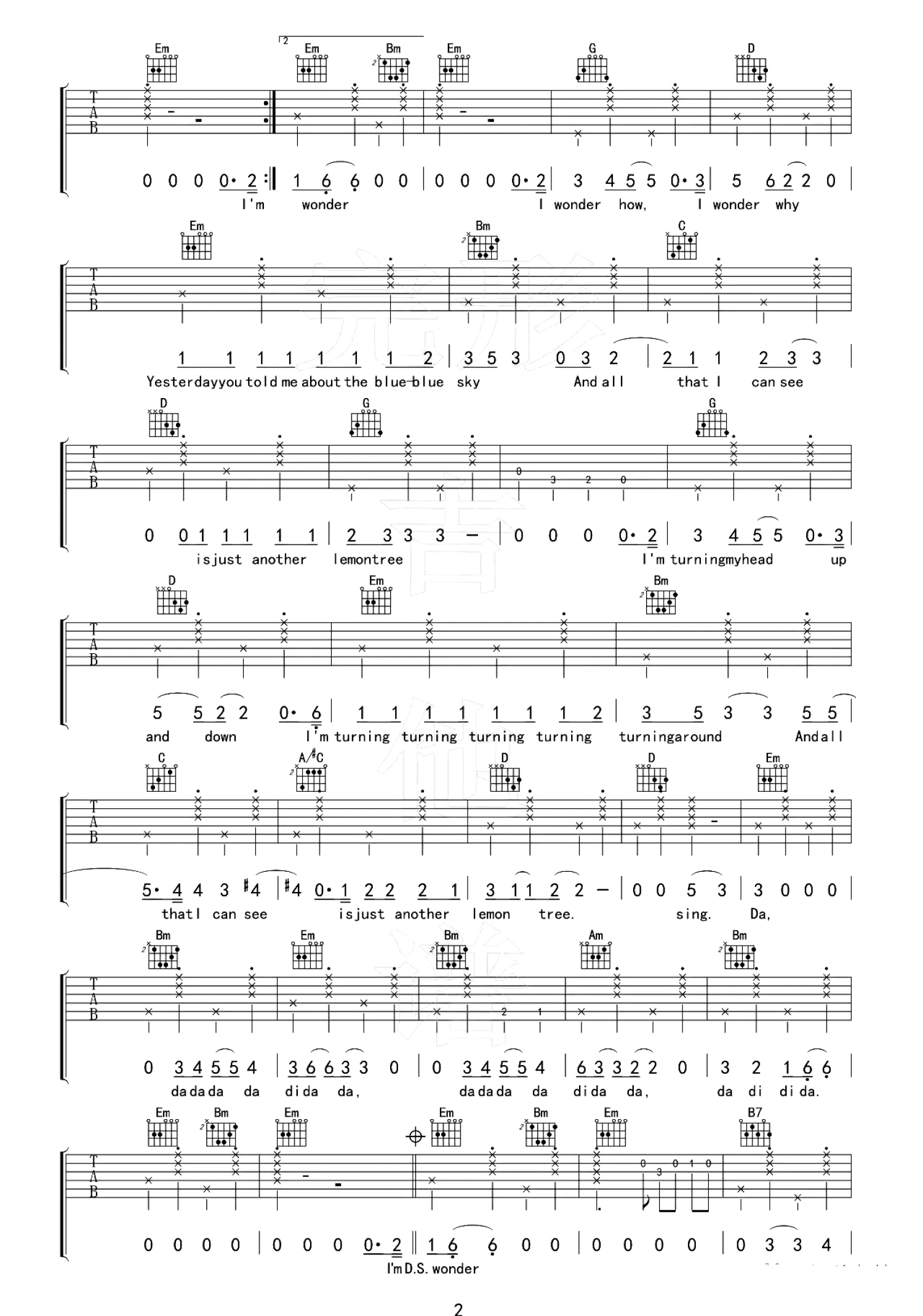 当前位置:琴谱网>吉他弹唱>Lemon Tree