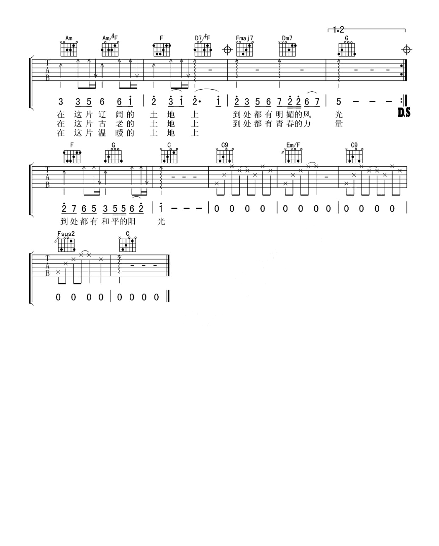曲谱介绍: 郭兰英《我的祖国》吉他谱_C调吉他弹唱谱