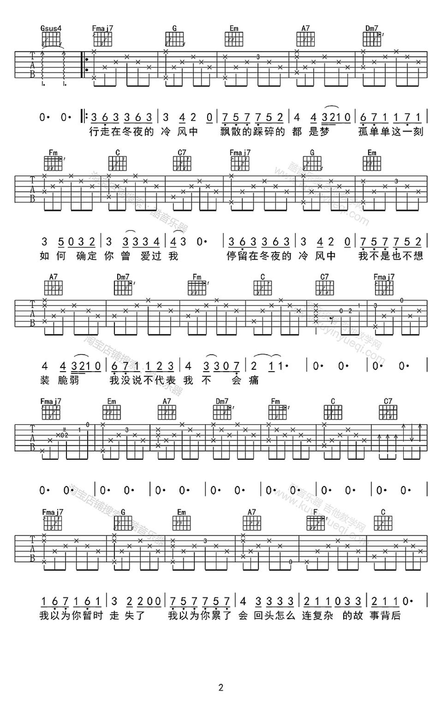 当前位置:琴谱网>吉他弹唱>走在冷风中