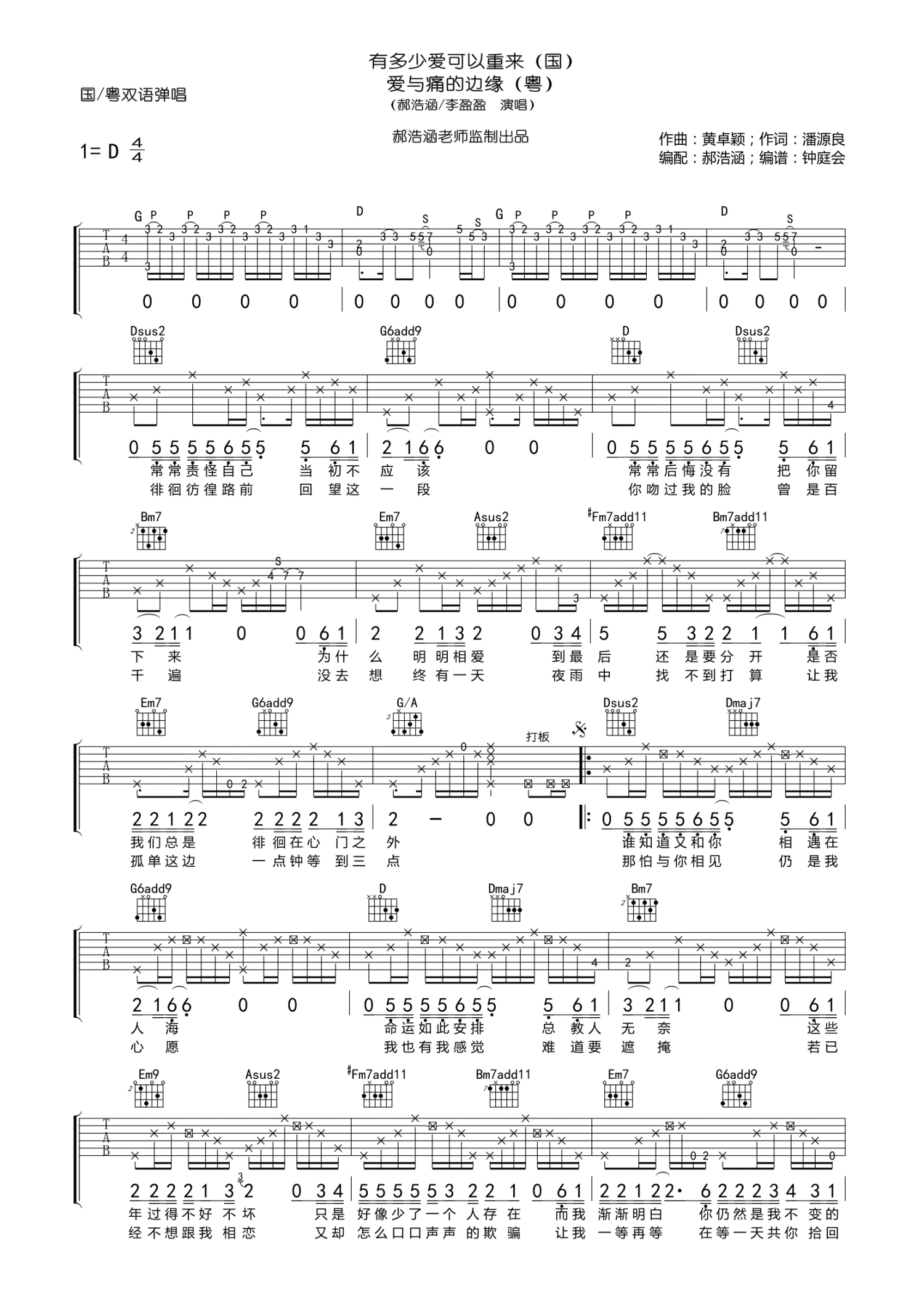 当前位置:琴谱网>吉他弹唱>有多少爱可以重来