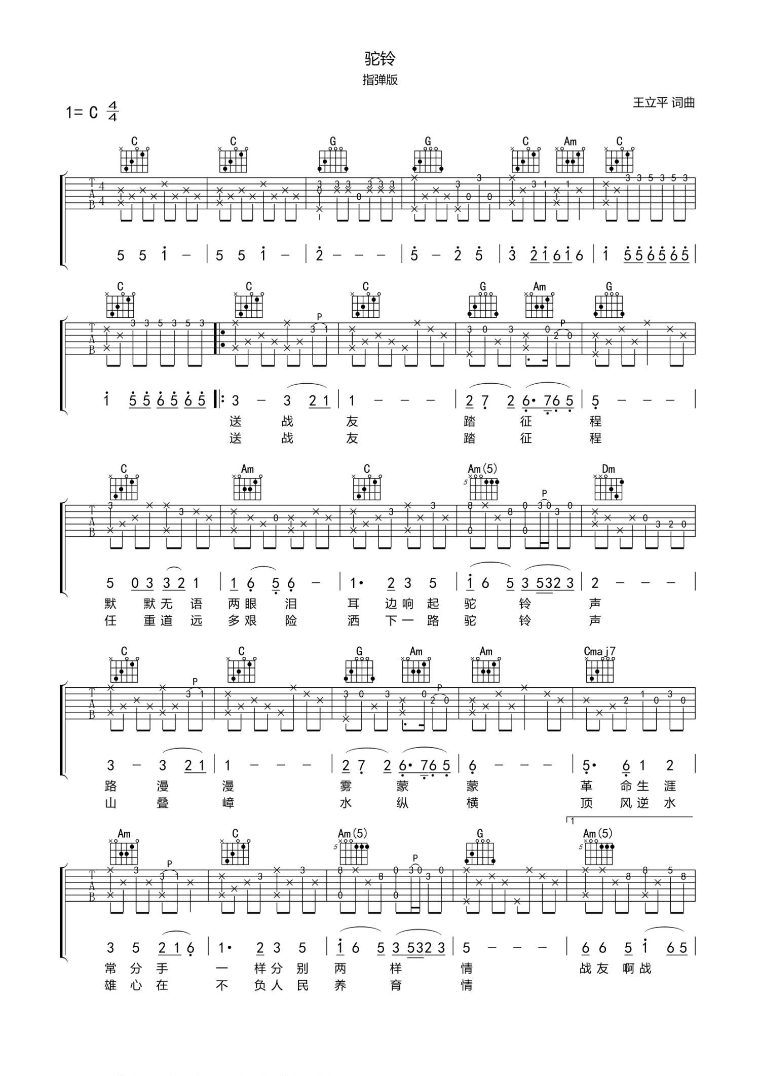 曲谱介绍: 刀郎《驼铃》吉他谱_C调吉他独奏谱