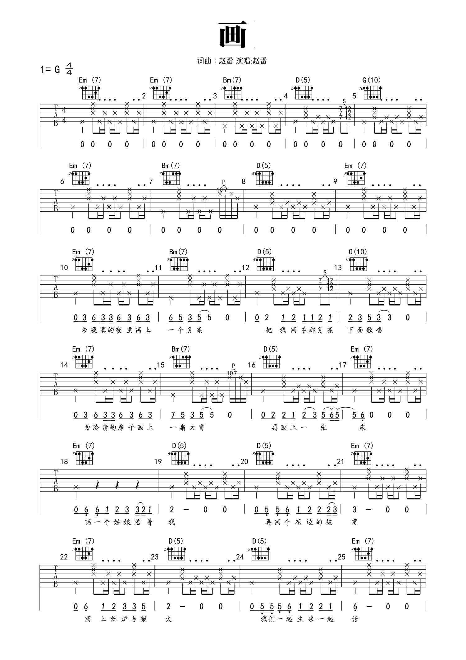 • 画吉他谱 - 赵雷 - G调吉他弹唱谱 - 带吉他教学视频第1张