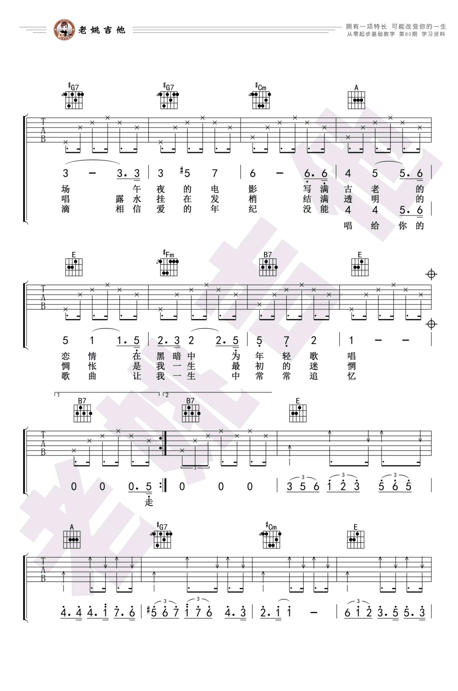 吉他弹唱E调来源:老姚吉他944 浏览2021-07-06 12:53发布图谱共4页