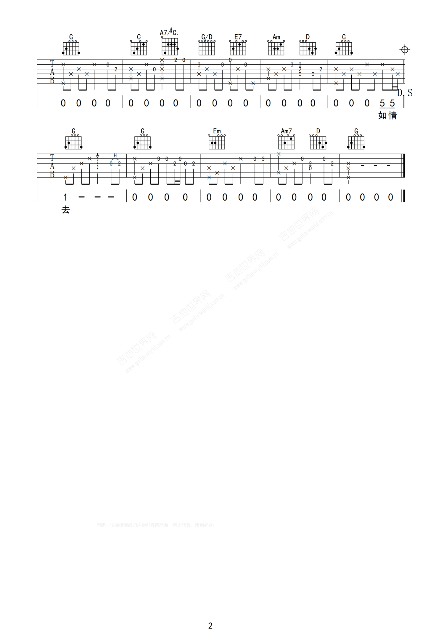 吉他弹唱G调来源:白毛1214 浏览2021-07-09 12:43发布图谱共2页