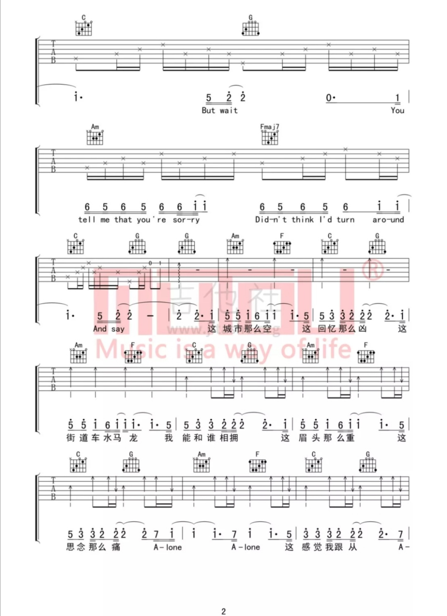 吉他弹唱C调来源:木头吉他屋495 浏览2021-07-09 12:30发布图谱共3页