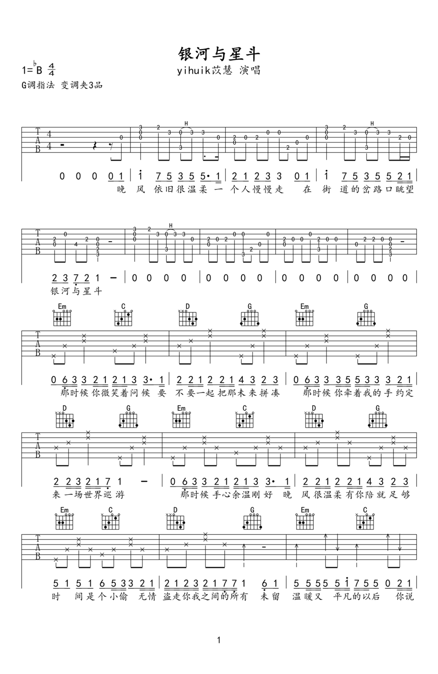 银河与星斗吉他谱 - yihuik苡慧 - G调吉他弹唱谱