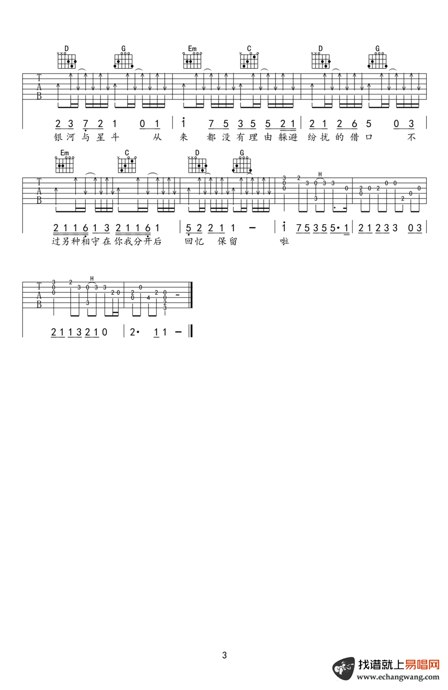 曲谱介绍: 《银河与星斗》吉他谱,yihuik苡慧演唱,柔和的歌声婉婉唱述一段曾经的爱情故事。银河与星斗吉他六线谱,原调降B选调G,变调夹夹第三品。银河中星与星之间相隔迢迢,同在地球的你我,心与心的距离仿佛是星斗,同样相隔万里,遥遥无期。苡慧治愈演绎带来甜甜的恋爱曲风。