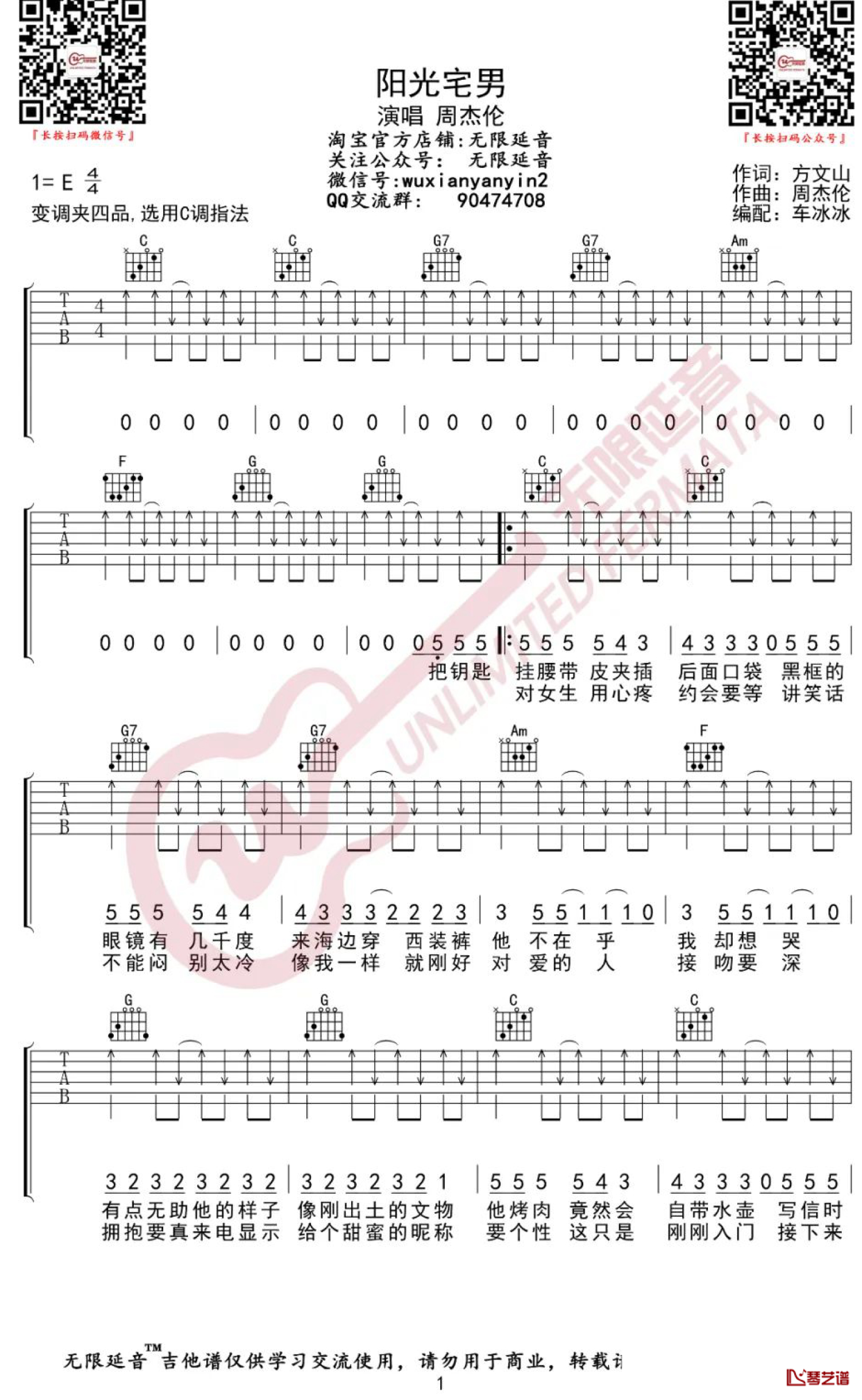 琴谱网为您精心推荐 阳光宅男 高清图谱