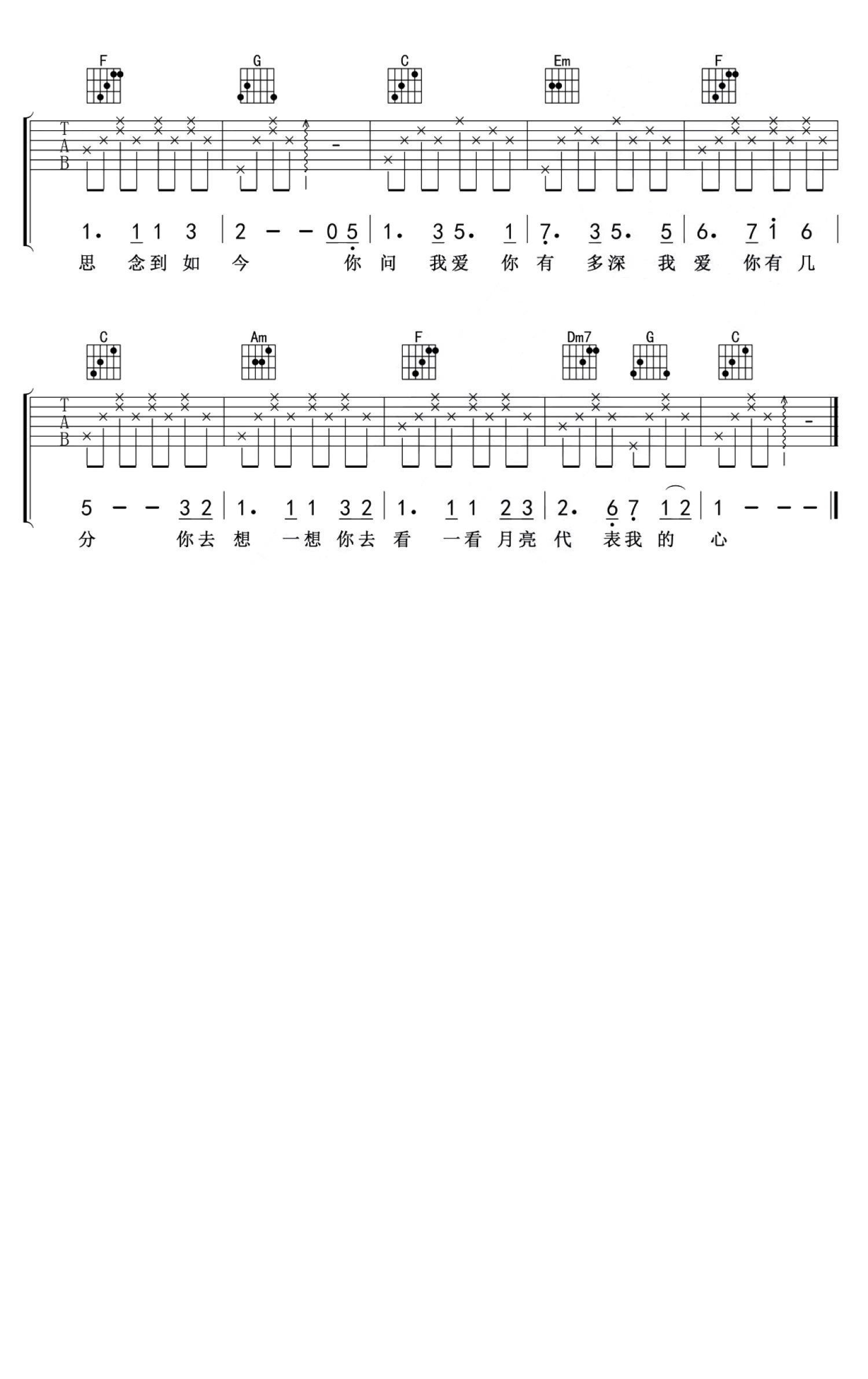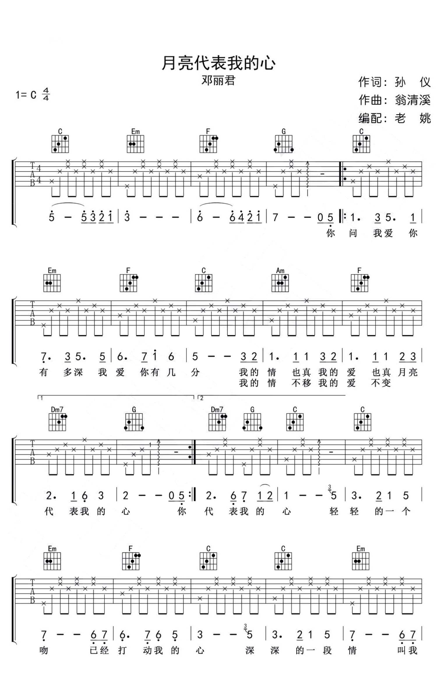 月亮代表我的心吉他谱 - 邓丽君 - C调吉他弹唱谱