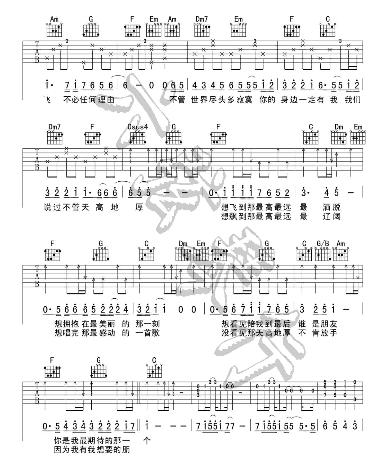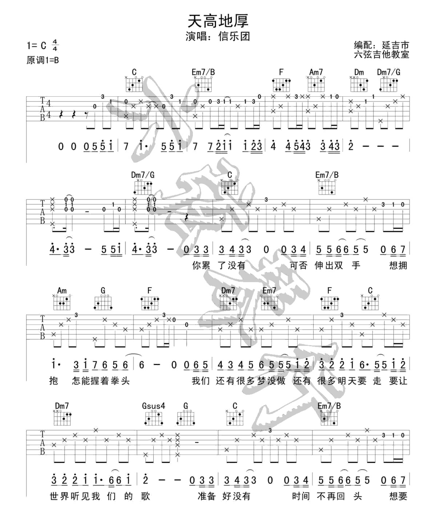 曲谱介绍: 信乐团《天高地厚》吉他谱_C调吉他弹唱谱