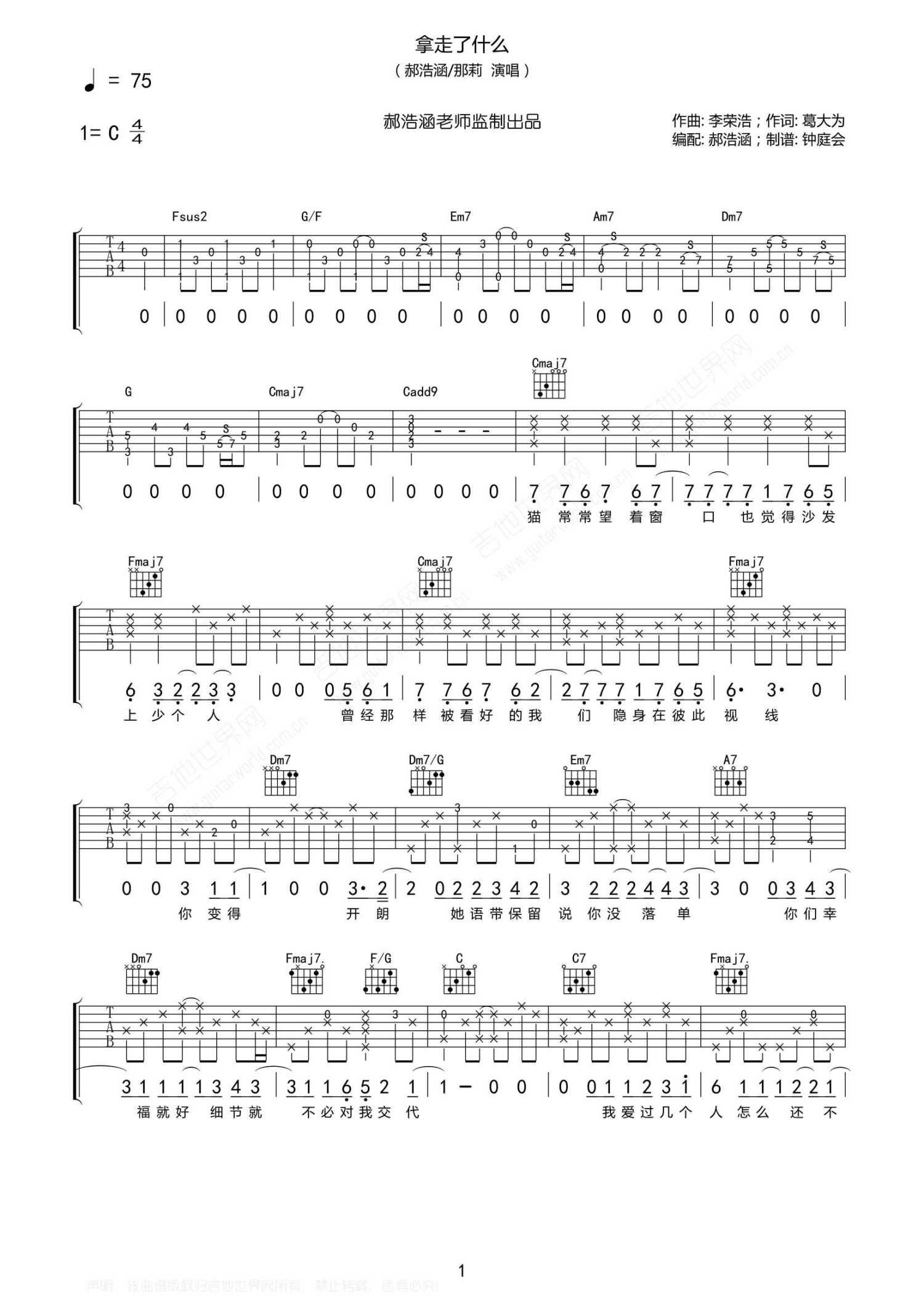 当前位置:琴谱网>吉他弹唱>拿走了什么