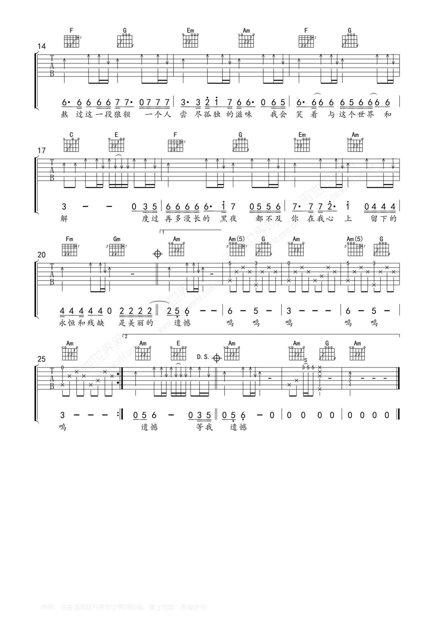 当前位置:琴谱网>吉他弹唱>美丽的遗憾