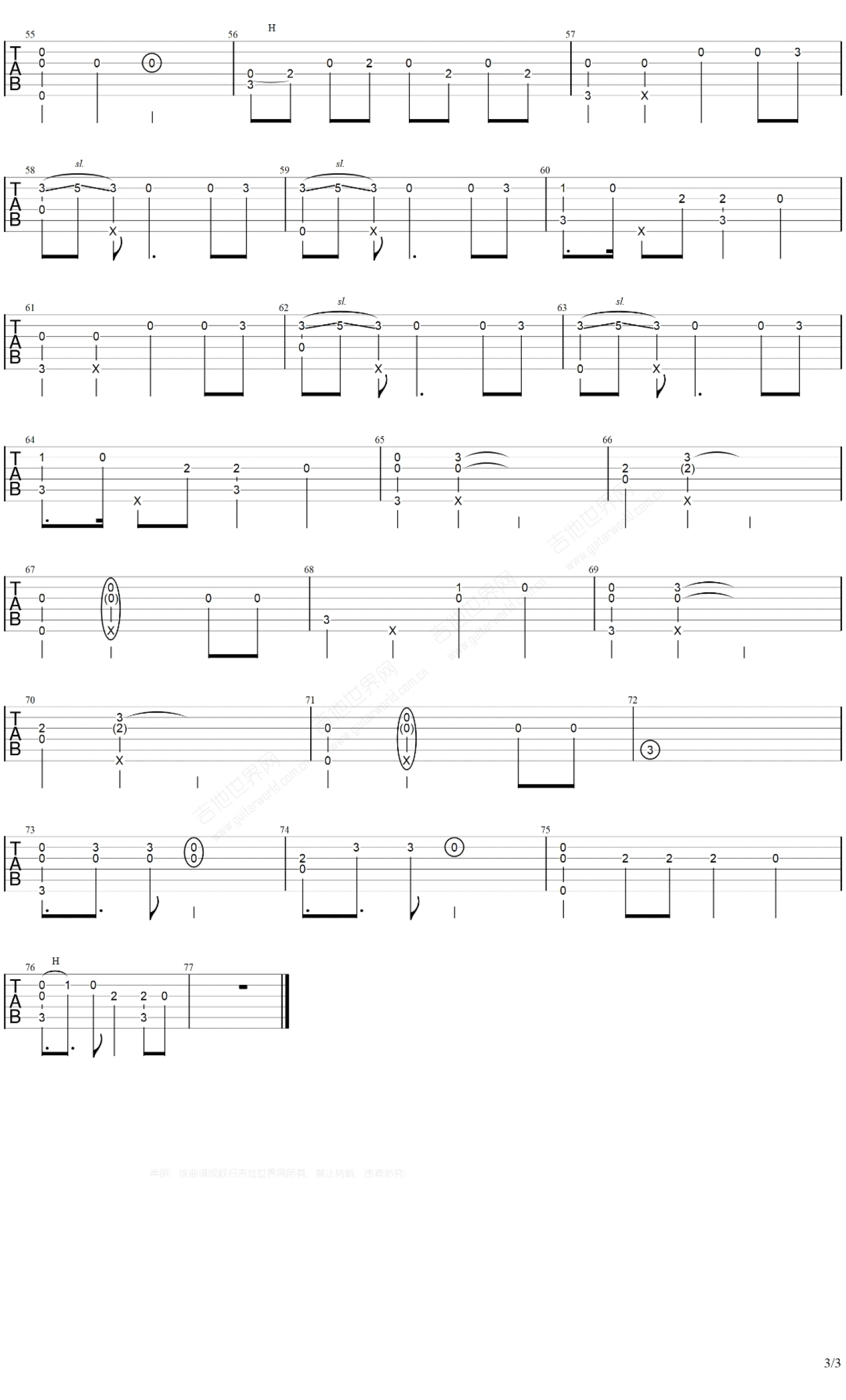 曲谱介绍: 指弹