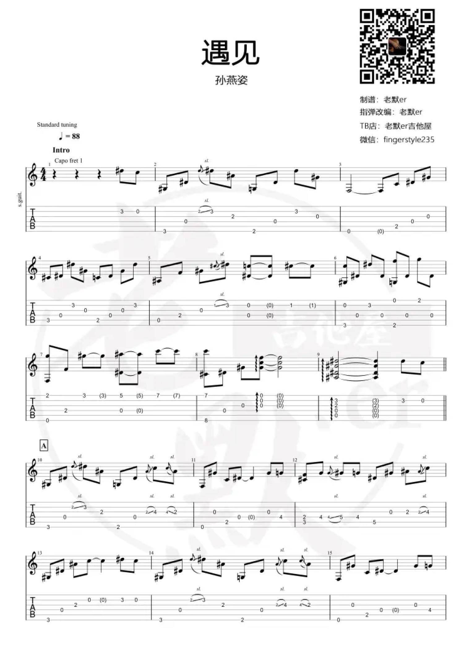 遇见吉他谱 - 孙燕姿 - 吉他独奏谱