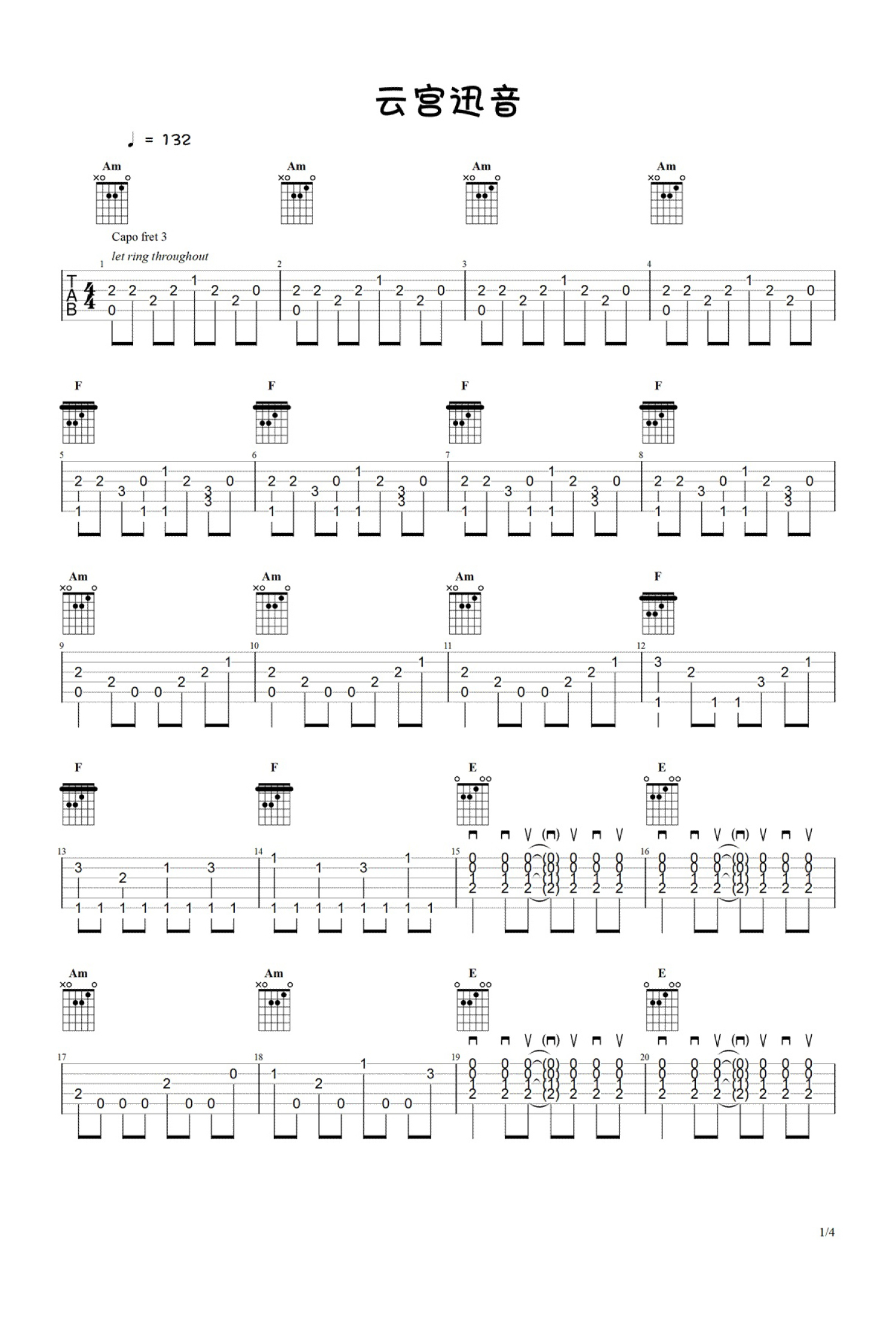 当前位置:琴谱网>吉他独奏>云宫迅音