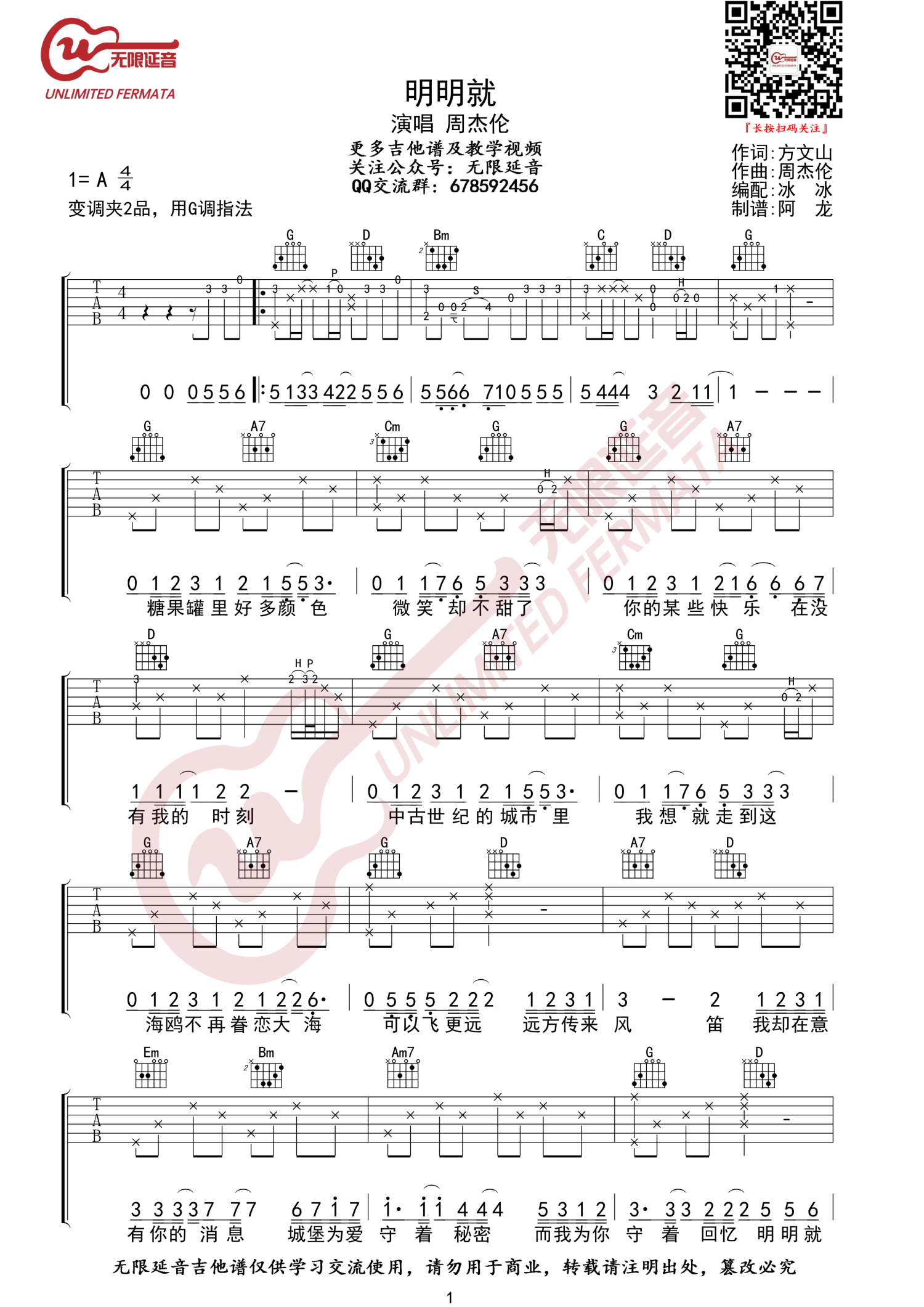 明明就吉他谱 - 周杰伦 - G调吉他弹唱谱