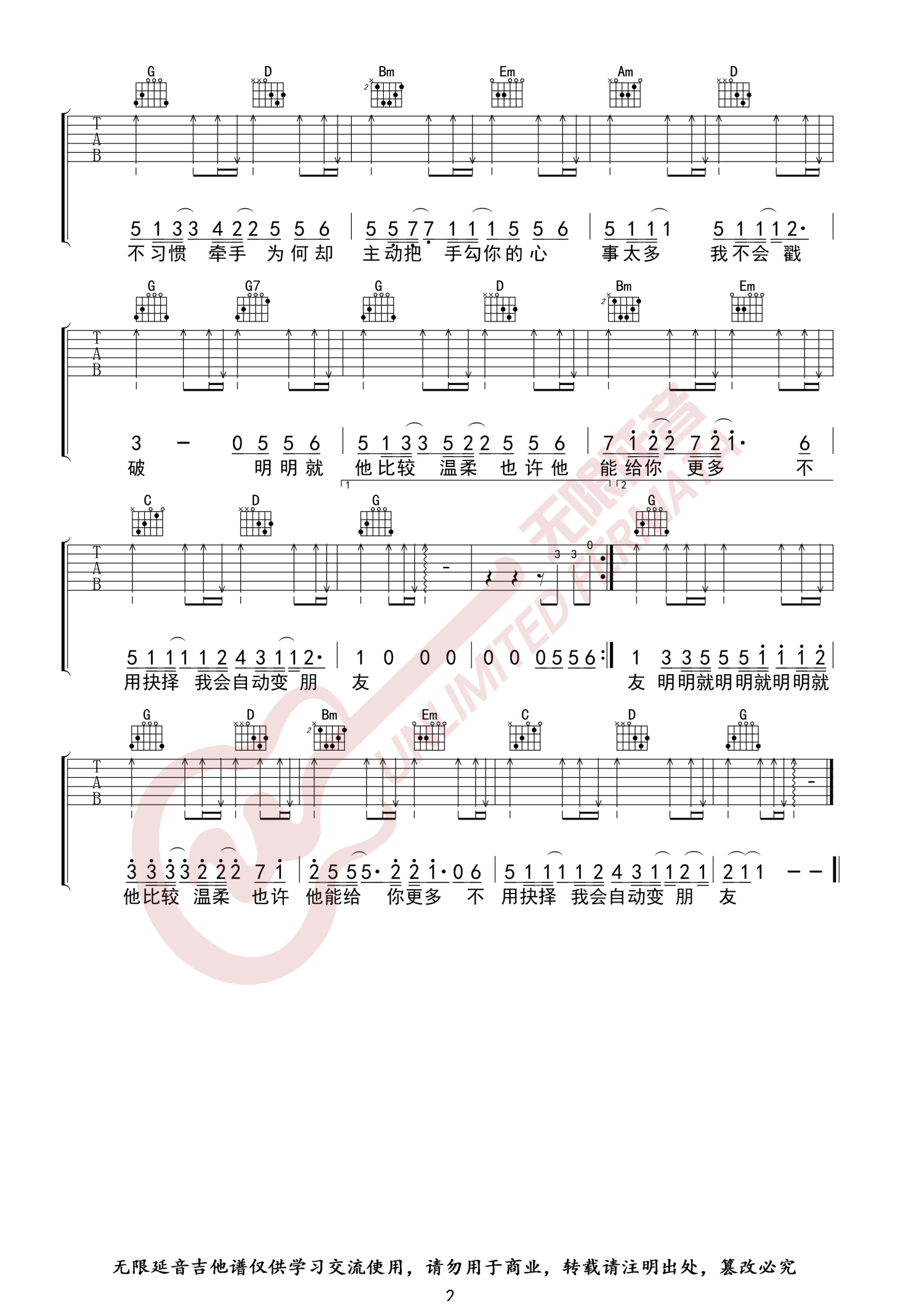 吉他弹唱G调来源:无限延音1080 浏览2021-08-03 15:35发布图谱共2页