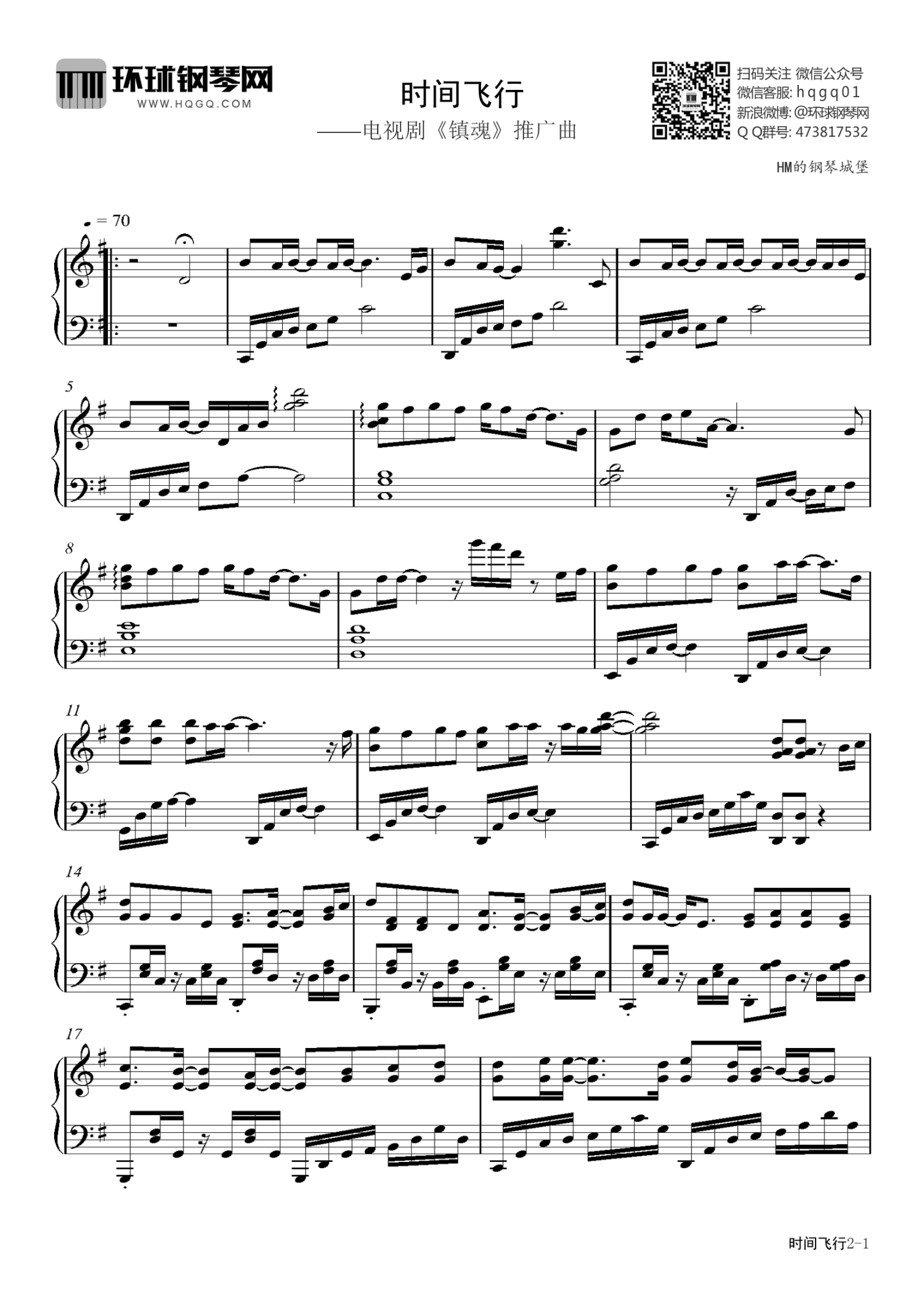 曲谱介绍: 钢琴谱时间飞行-电视剧《镇魂》推广曲