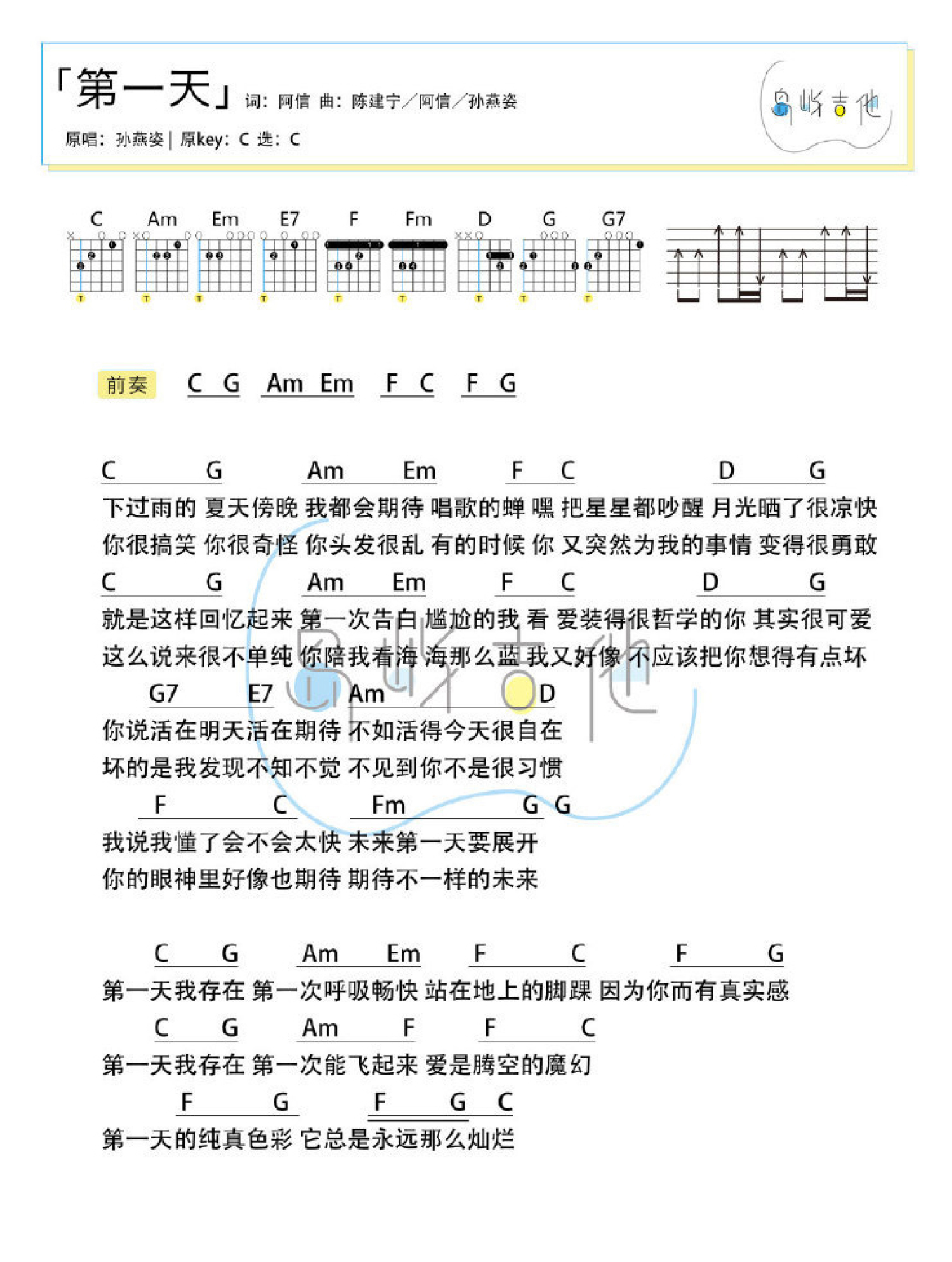第一天吉他谱 - 孙燕姿 - C调吉他弹唱谱