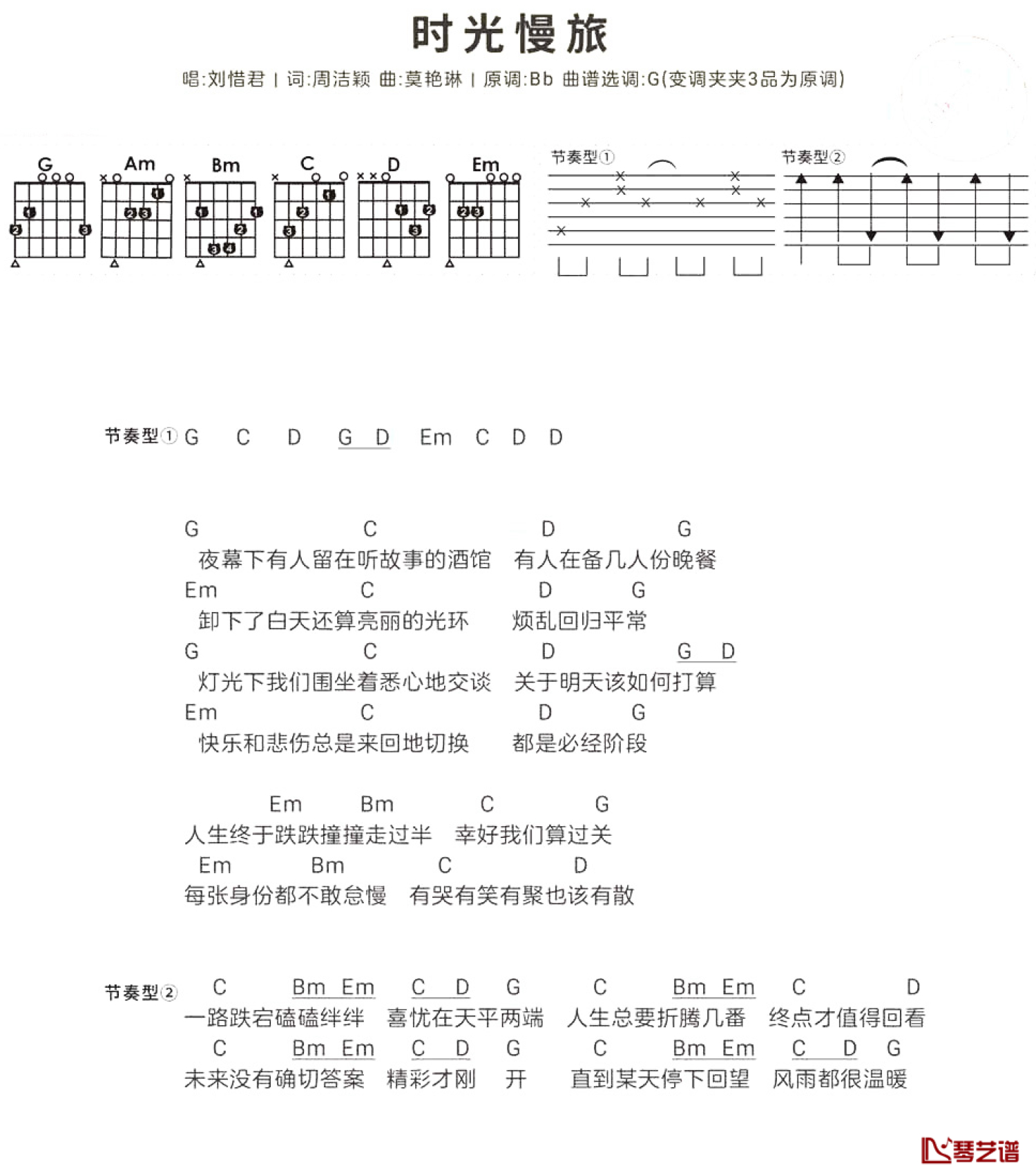 时光慢旅吉他谱 - 刘惜君 - G调吉他弹唱谱 - 简易和弦版