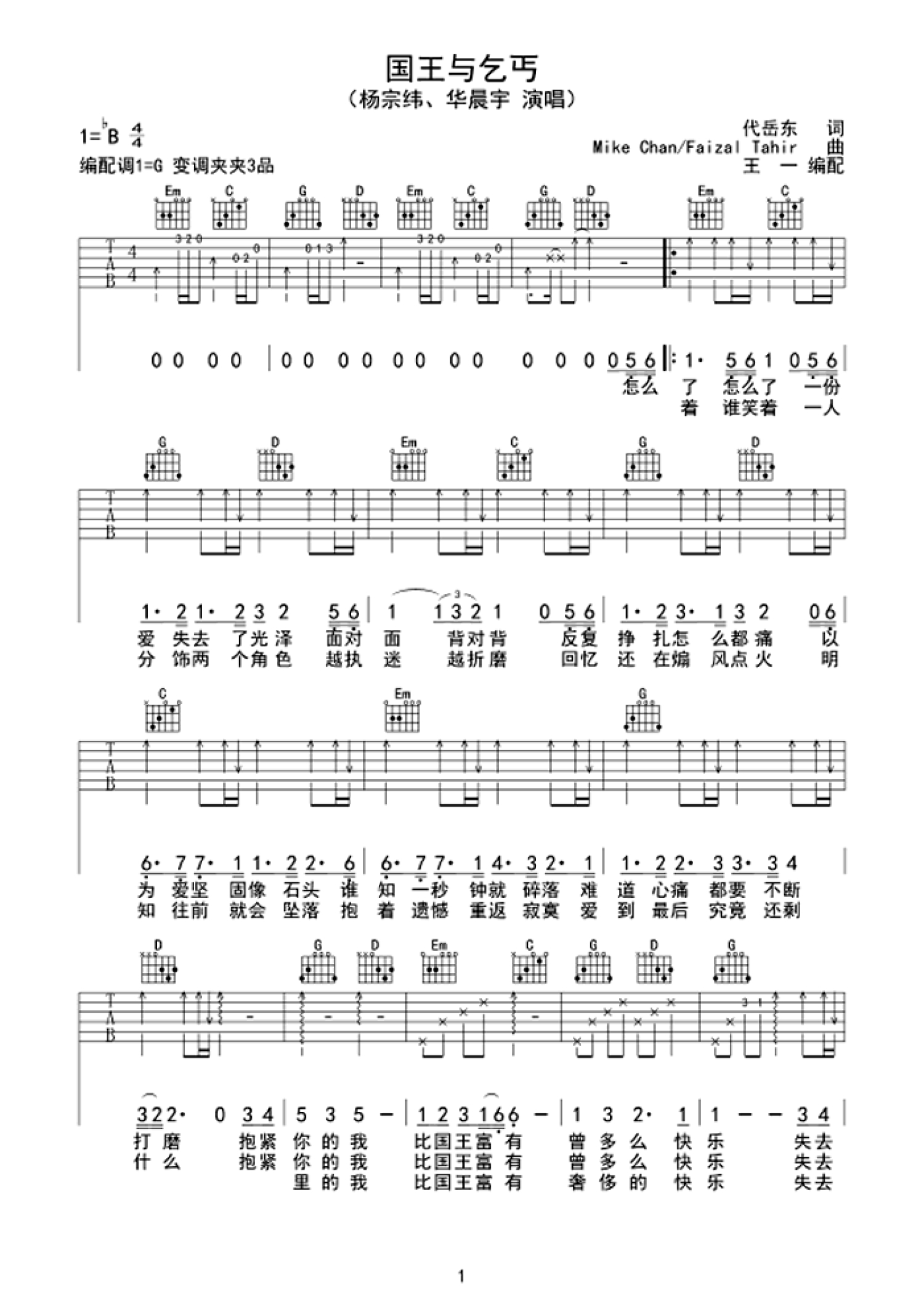 当前位置:琴谱网>吉他弹唱>国王与乞丐