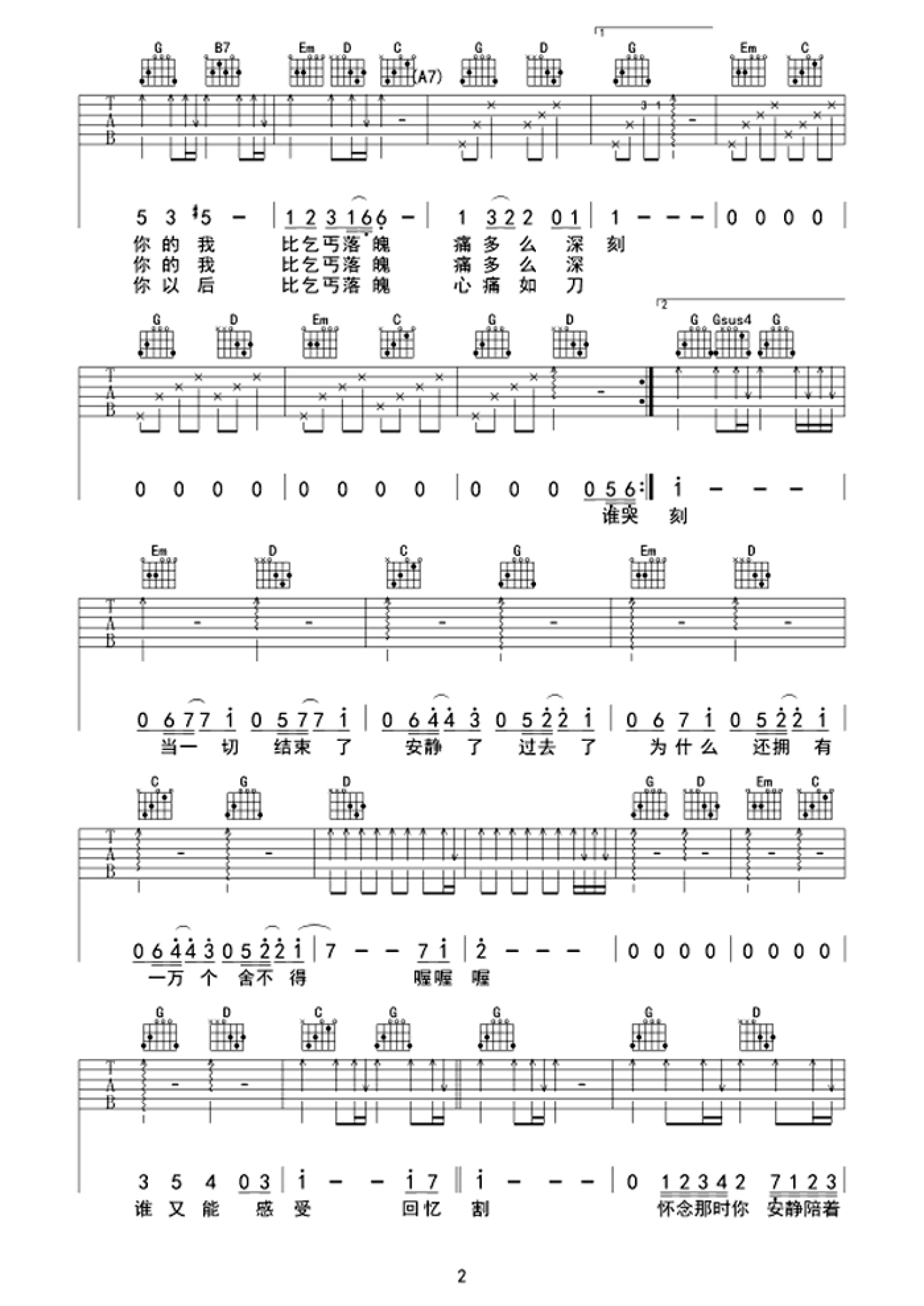 吉他弹唱G调来源:王一527 浏览2021-08-05 09:50发布图谱共3页