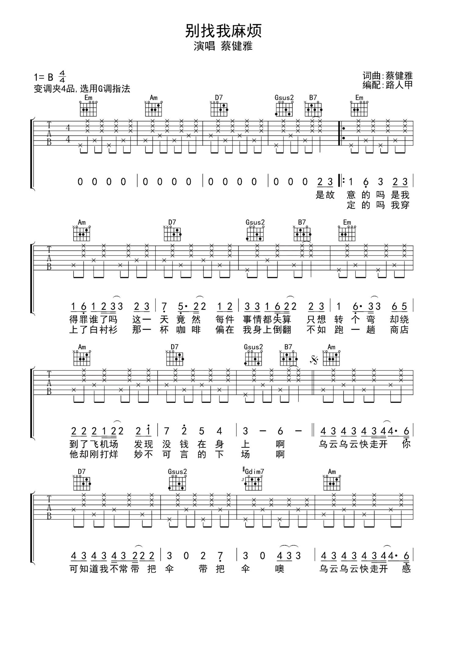 曲谱介绍: 蔡健雅《别找我麻烦》吉他谱_G调吉他弹唱谱