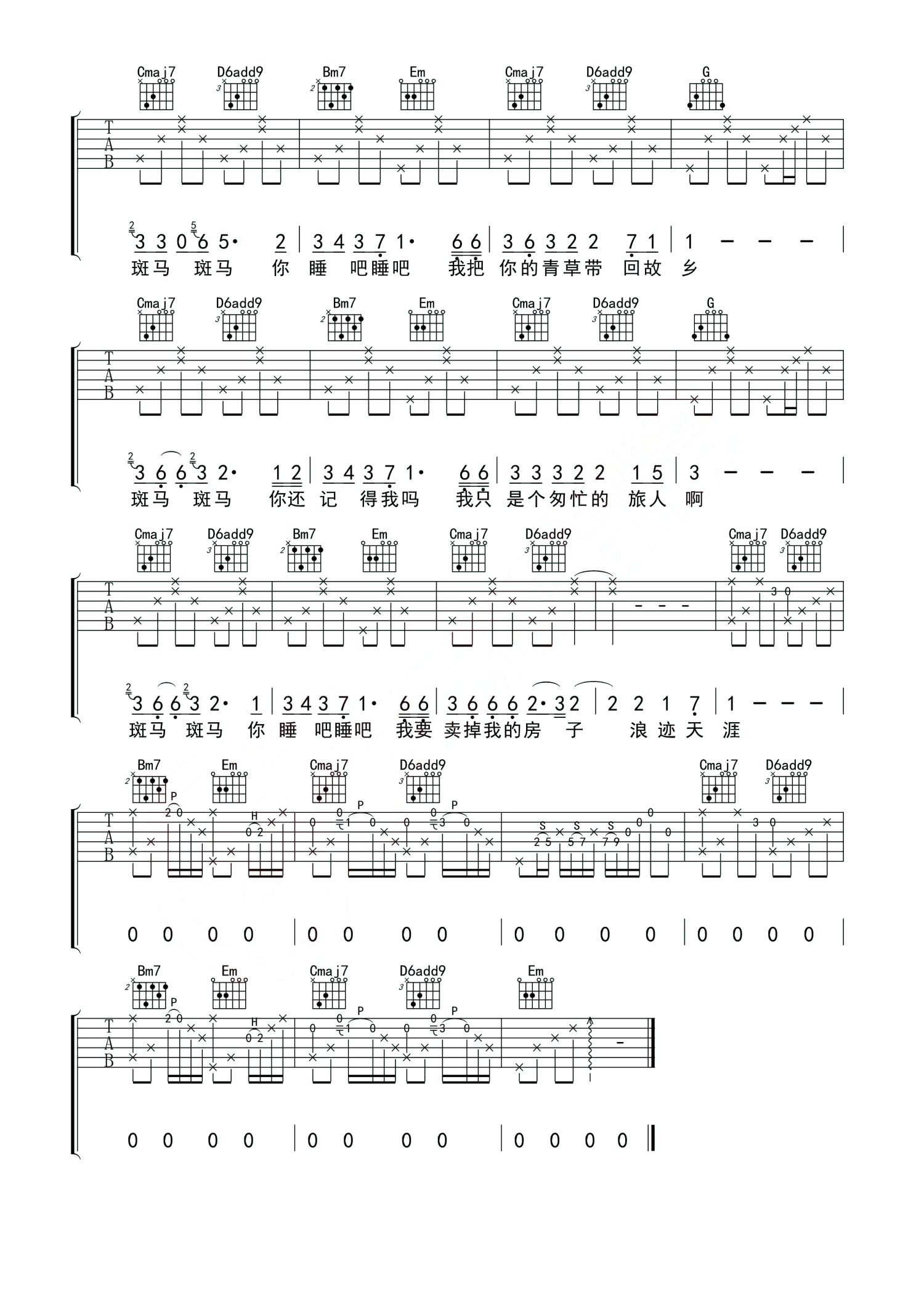 曲谱介绍: 宋冬野《斑马斑马》吉他谱_G调吉他弹唱谱