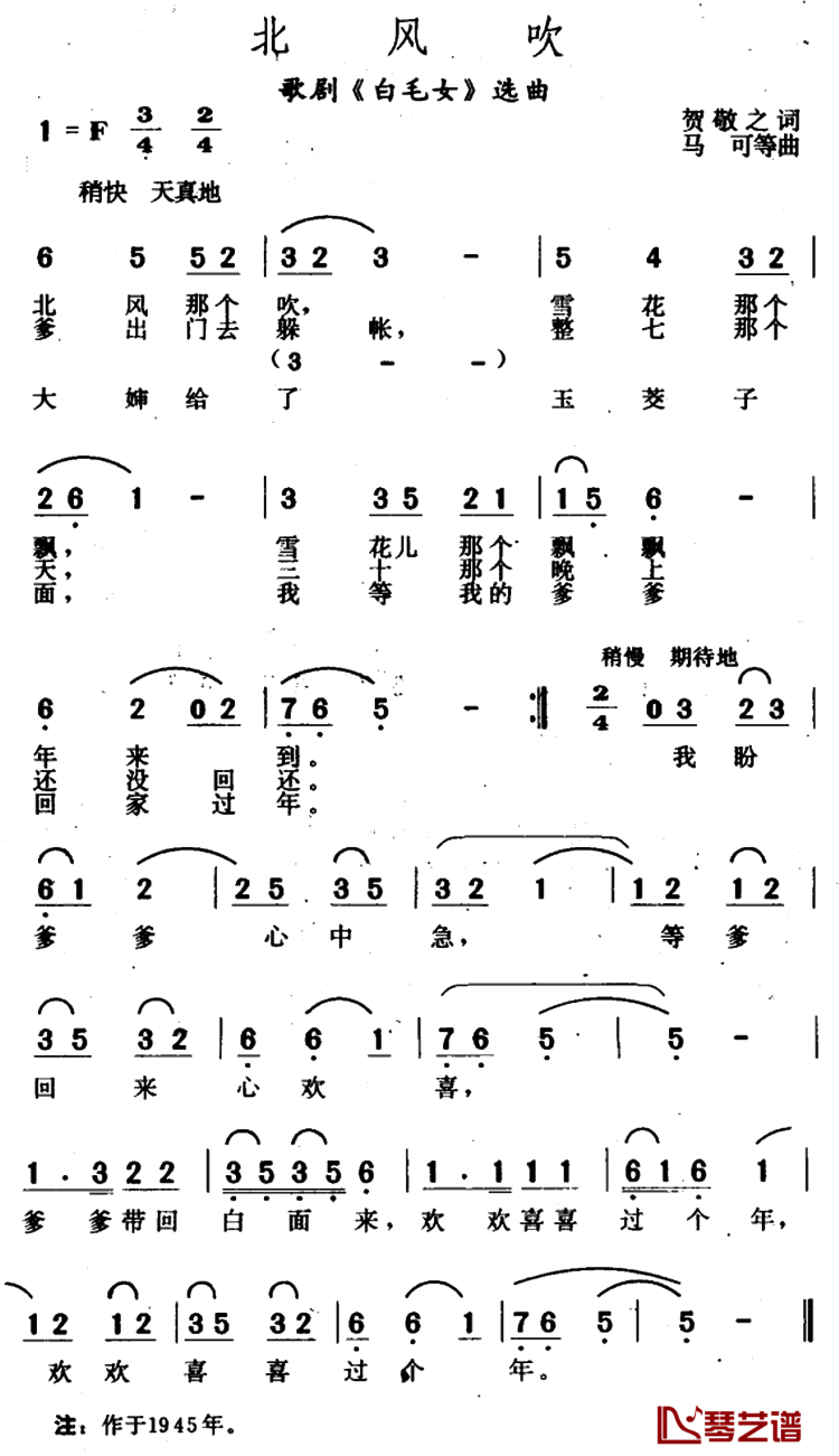 白毛女简谱 - 郭兰英