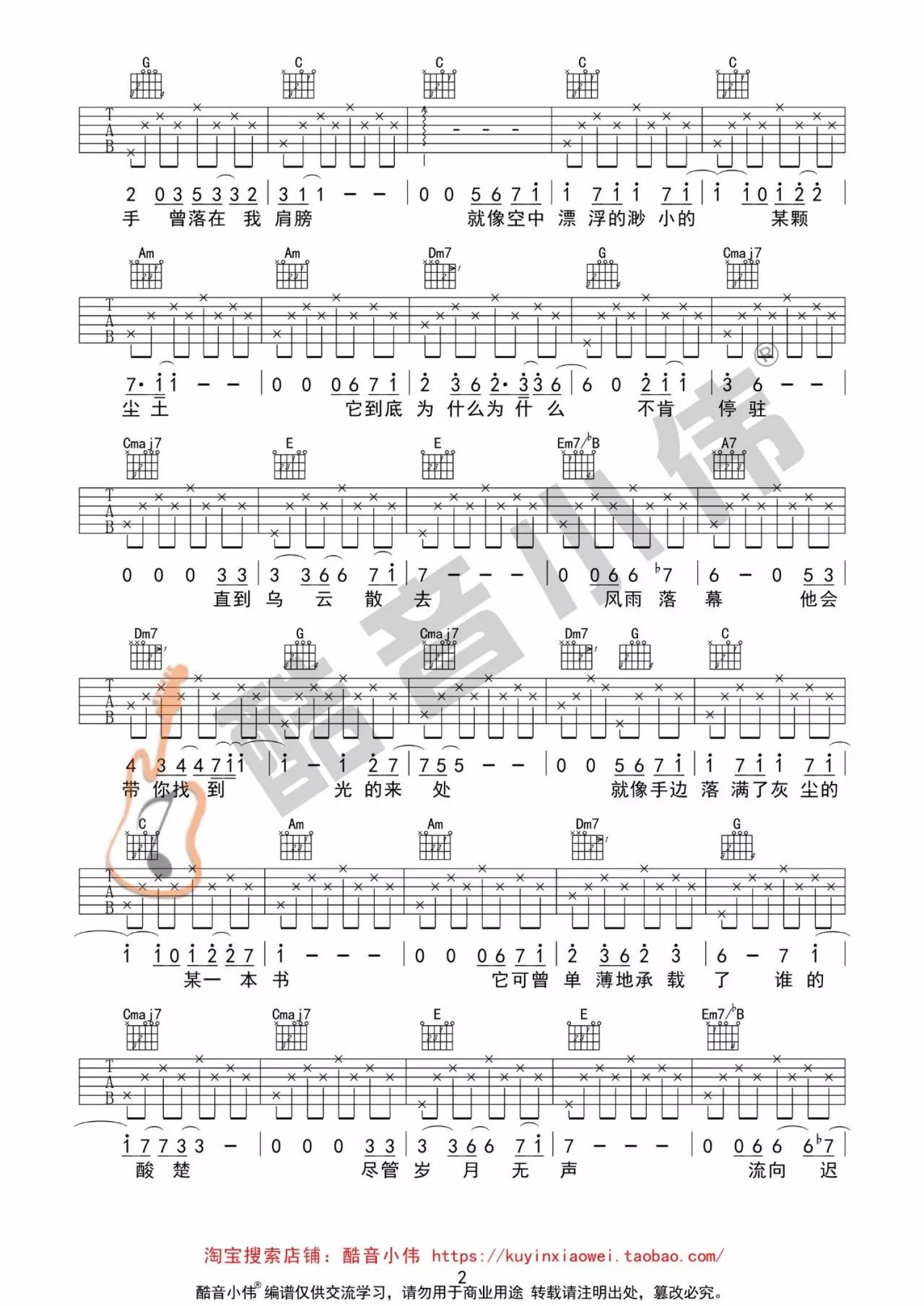 吉他弹唱G调来源:酷音小伟965 浏览2021-08-07 22:58发布图谱共6页