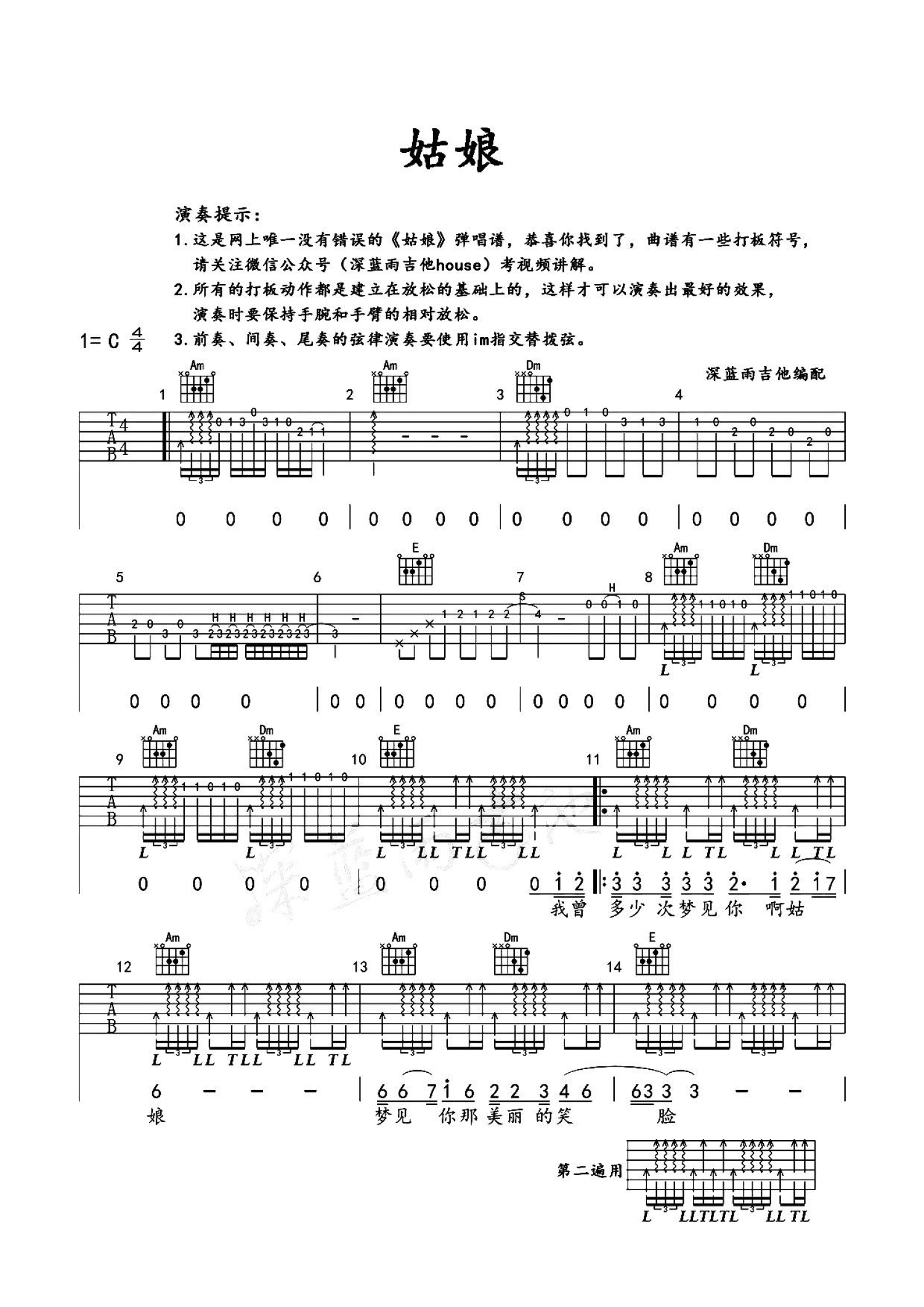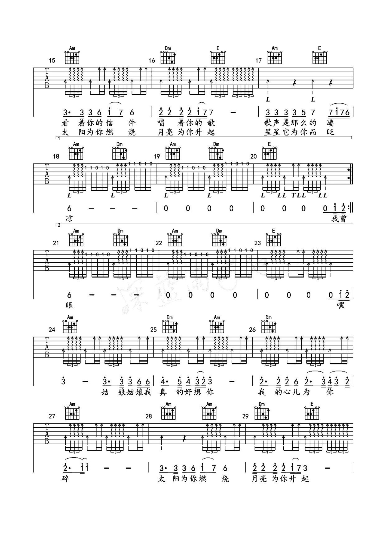 曲谱介绍: 陈楚生《姑娘》吉他谱_C调吉他弹唱谱
