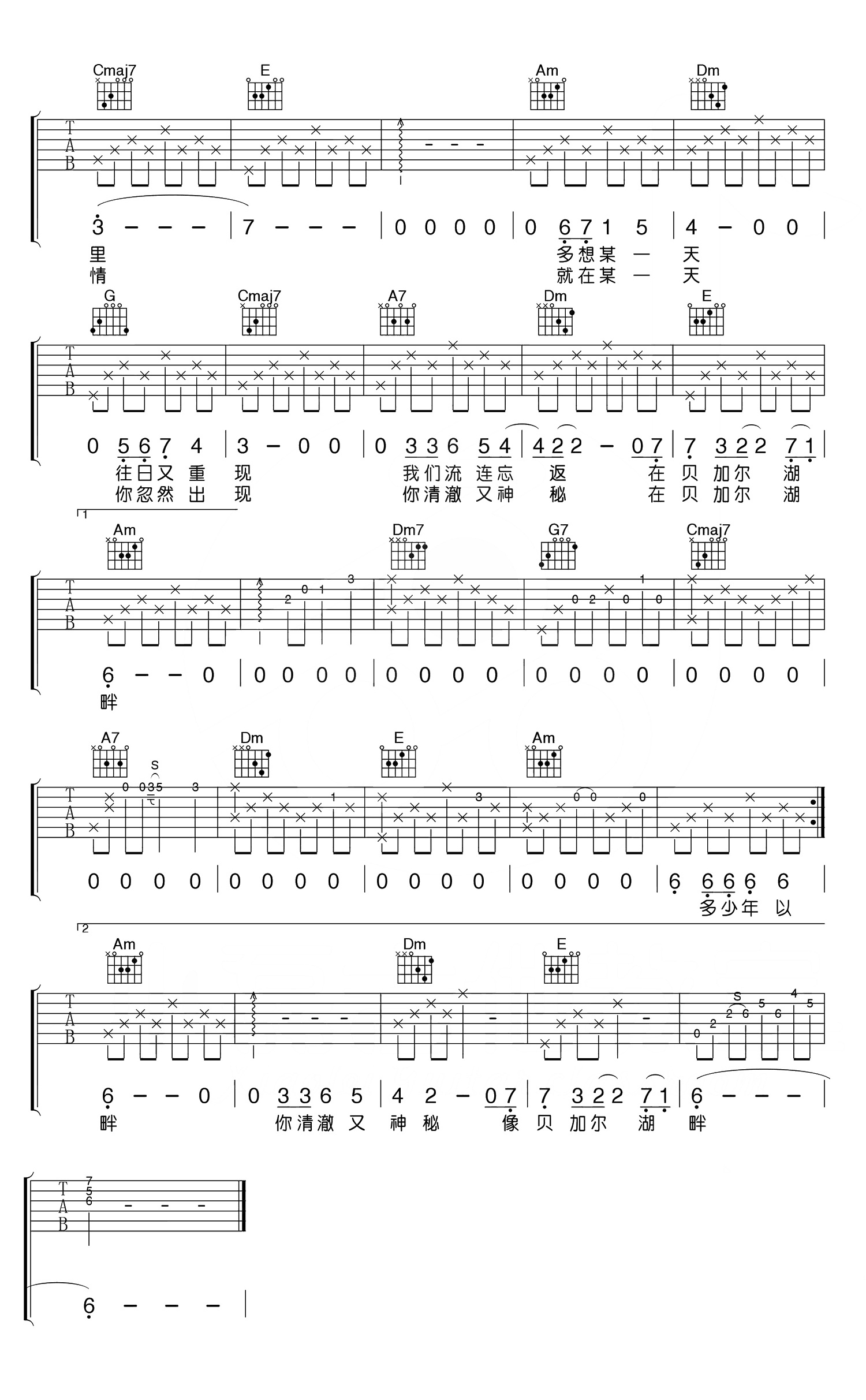 当前位置:琴谱网>吉他弹唱>贝加尔湖畔
