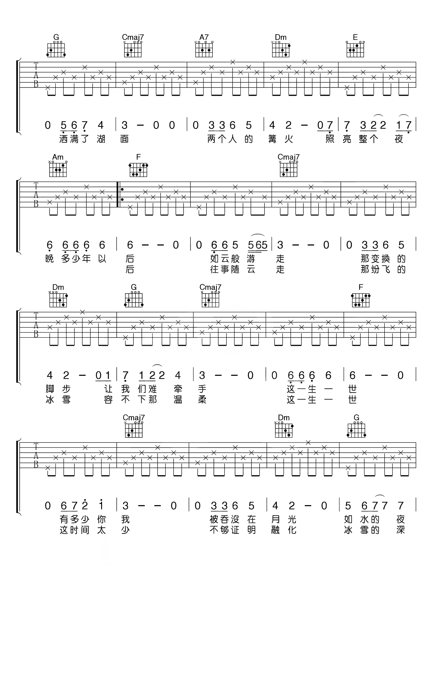 曲谱介绍: 原调F,选用C调指法,变调夹夹五品,编配说明:终于做了李健老师的歌,这首贝加尔湖畔是李健老师的代表作品,也是吉他弹唱必备歌曲,希望老师的版本大家可以喜欢!老师制作这个乐谱尽可能的保留了原版的成分,原版前奏中有两个阶段,一个是第一阶段比较散的钢琴音色,我们这里乐谱也有所呈现,后段的风琴音色的主旋律也是必须要有的!其他弹唱部分就很简单了,几乎没有难度可言!是一首非常值得学习的乐谱!难度:4级