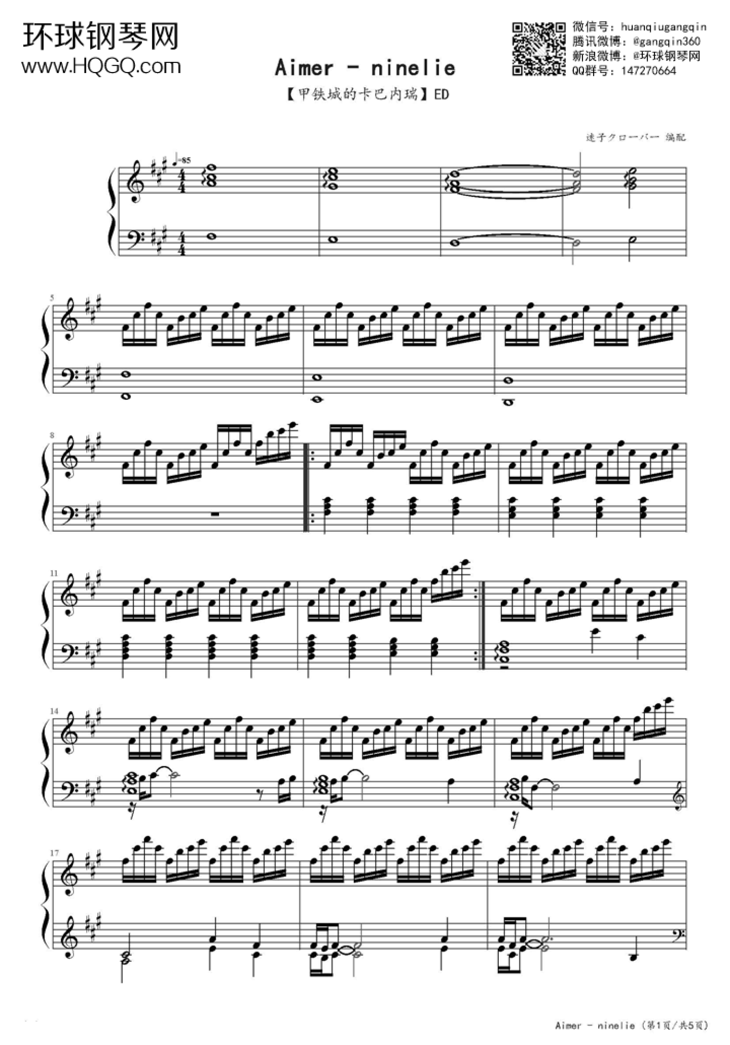 曲谱介绍: 钢琴谱Aimer-ninelie(甲铁城的卡巴内瑞ED)