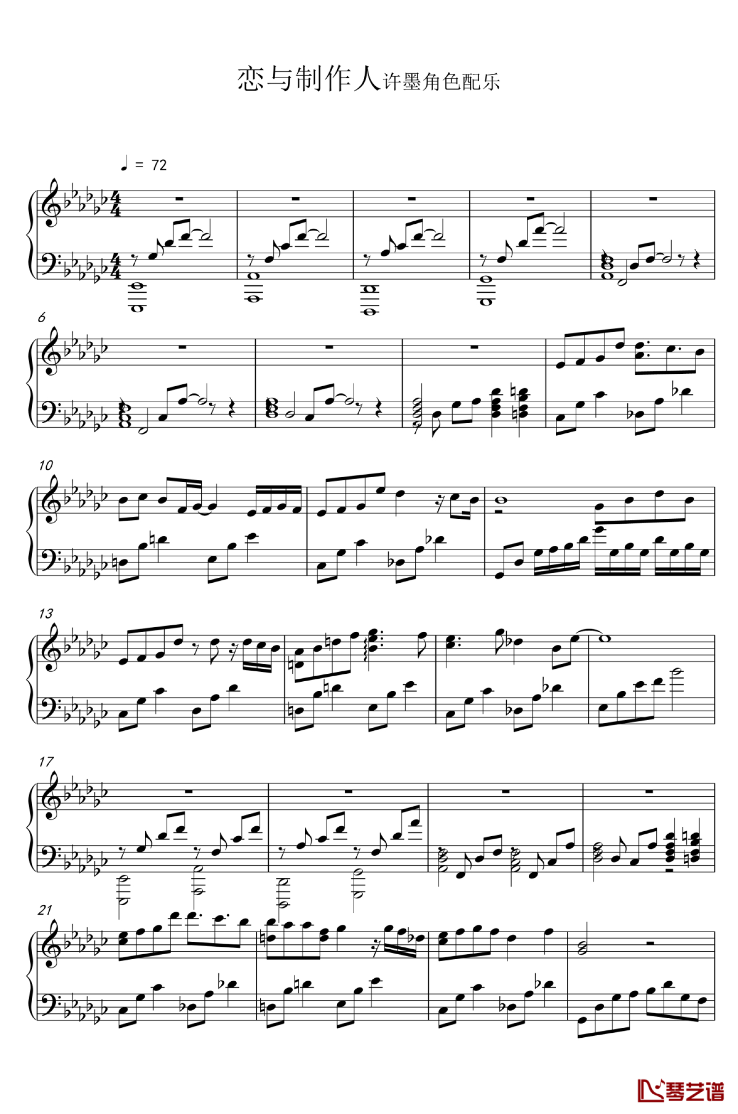 曲谱介绍: 恋与制作人《许墨人物配乐》钢琴谱