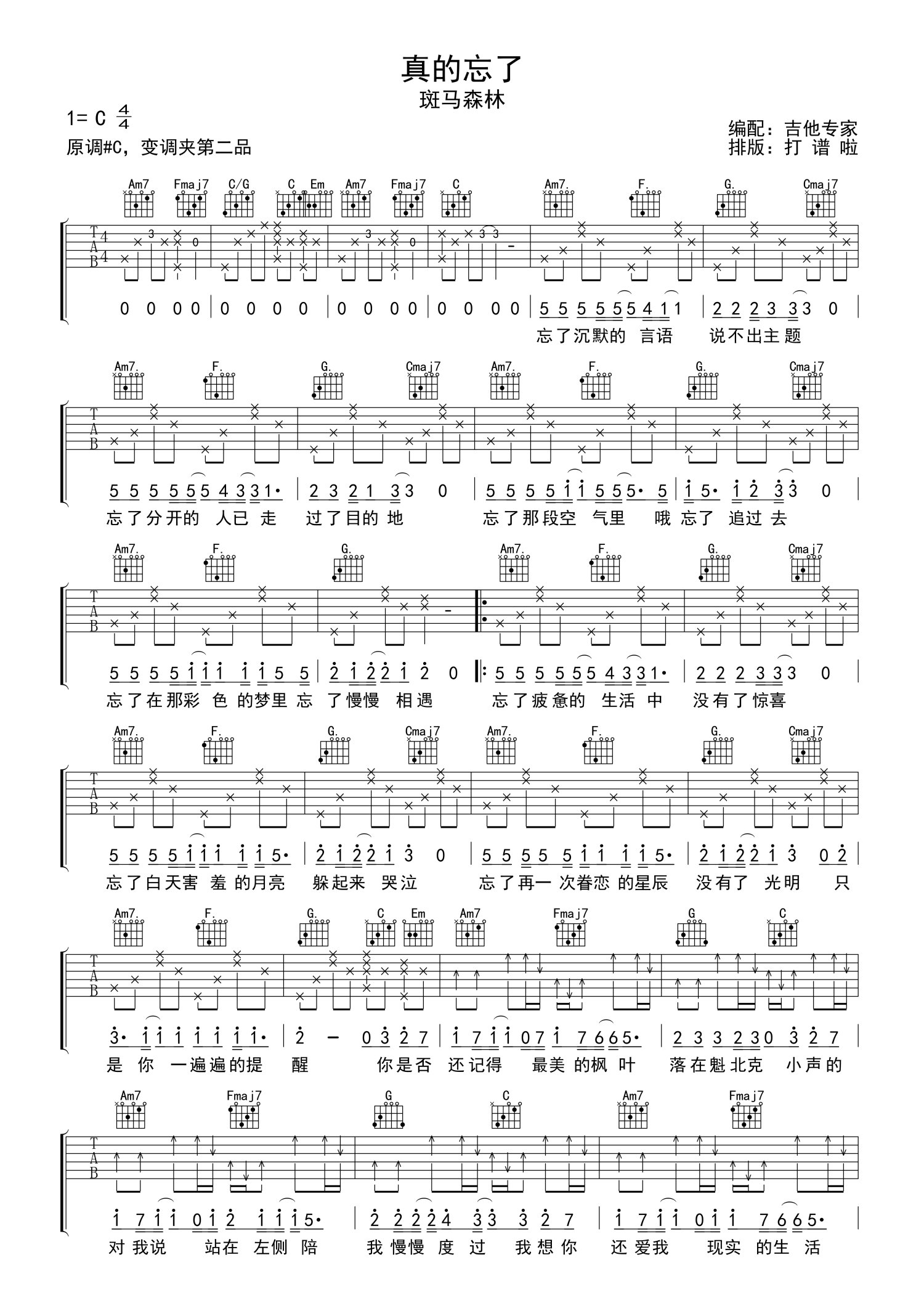 • 真的忘了吉他谱 - 斑马森林 - C调吉他弹唱谱第1张