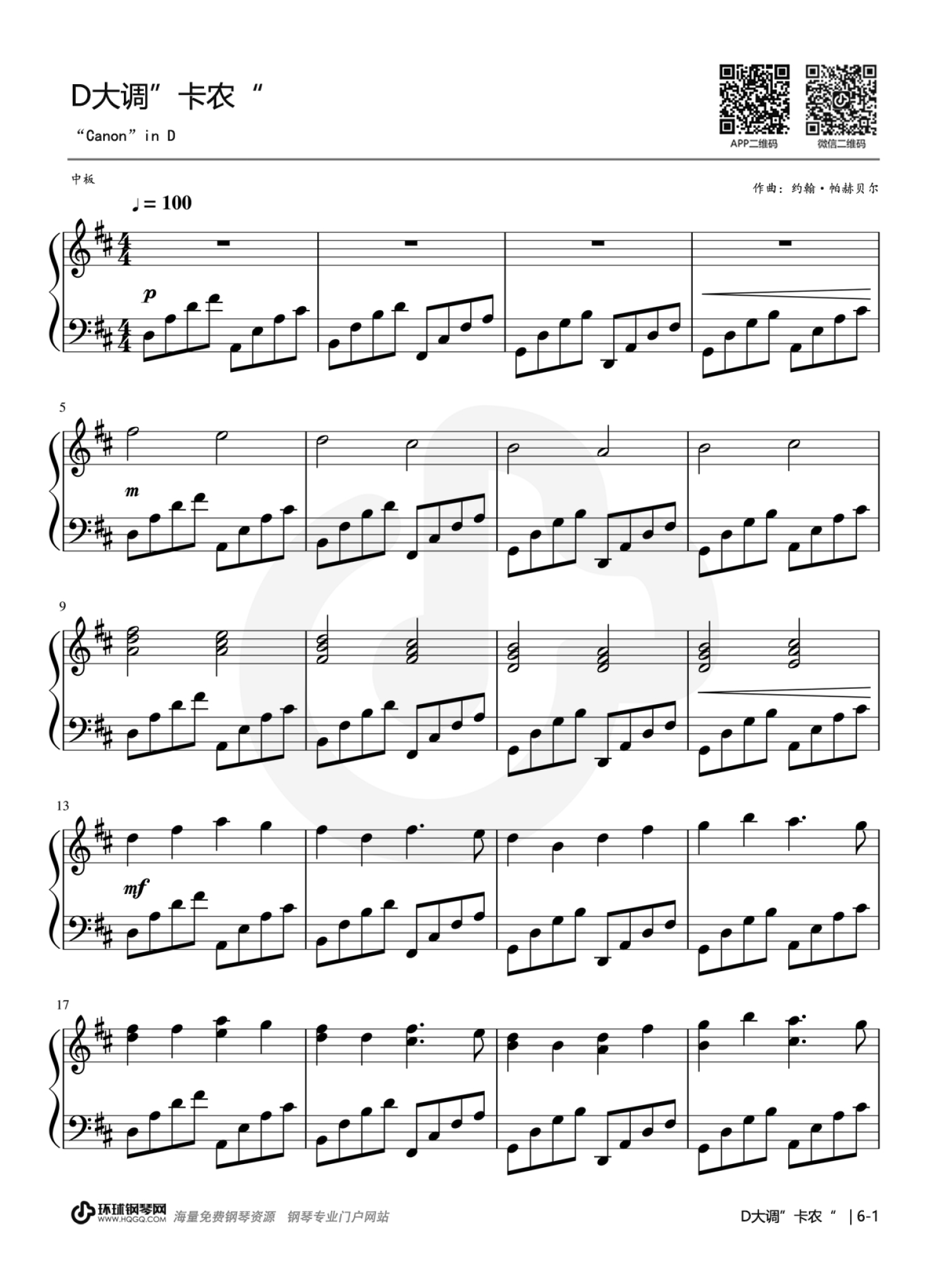 当前位置:琴谱网>钢琴谱>D大调卡农