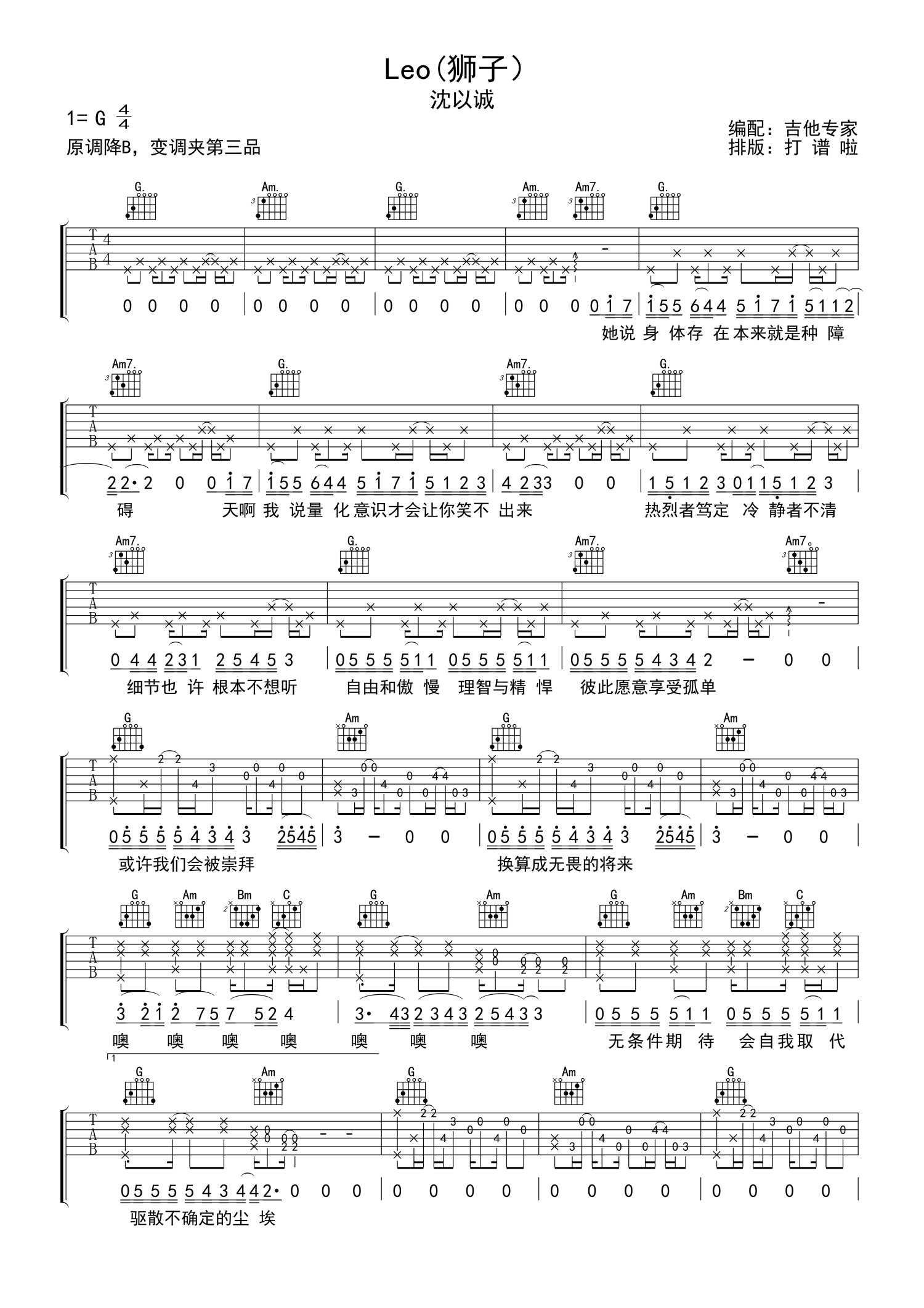 • Leo(狮子)吉他谱 - 沈以诚 - G调吉他弹唱谱第1张