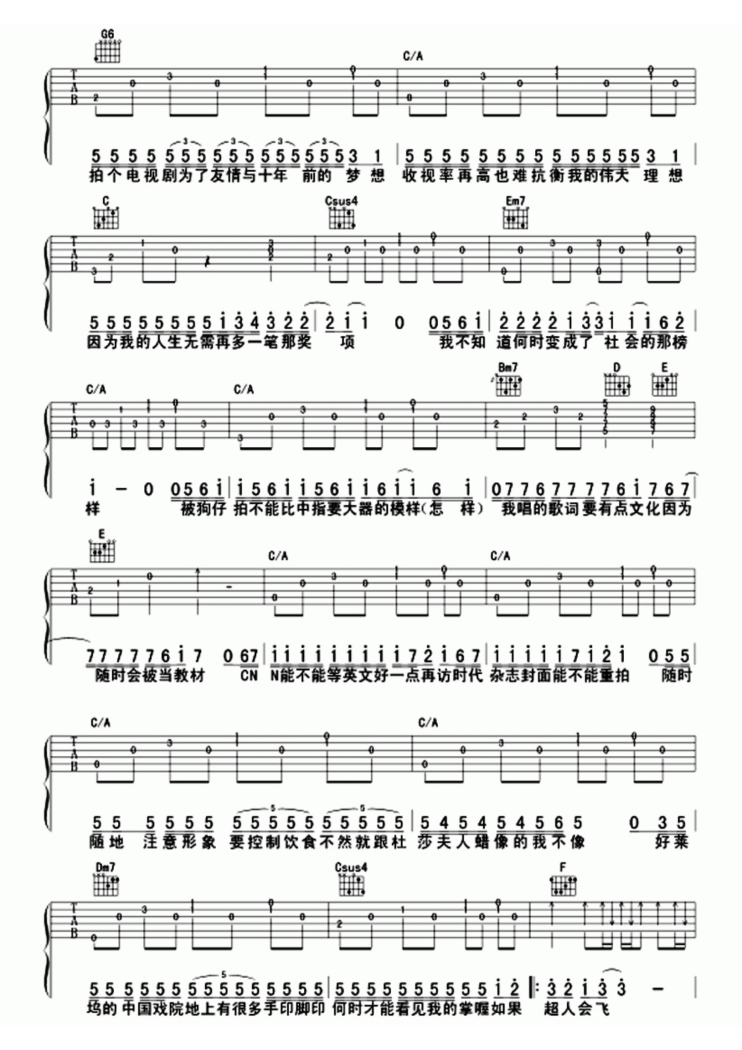 当前位置:琴谱网>吉他弹唱>超人不会飞