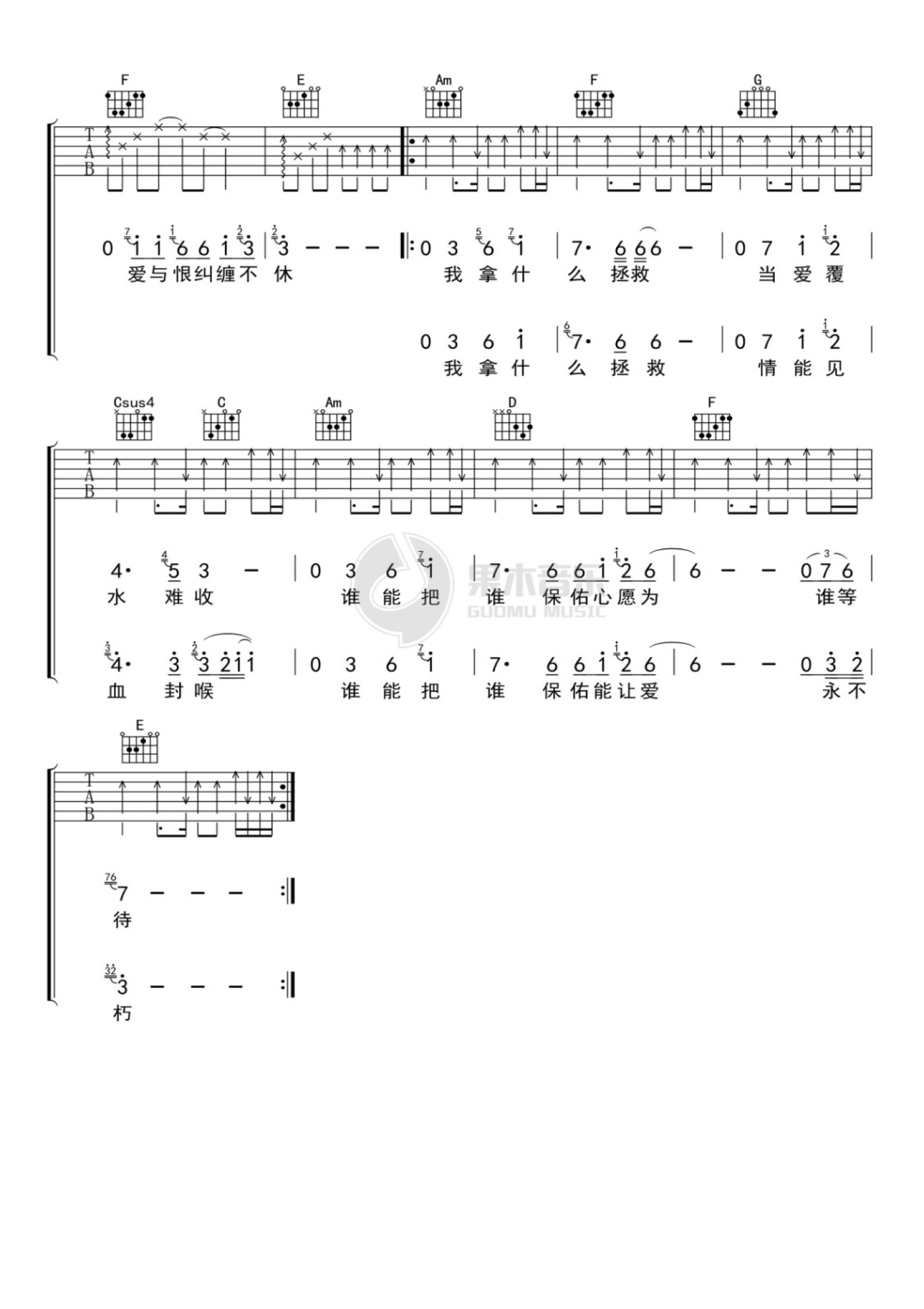 当前位置:琴谱网>吉他弹唱>拯救