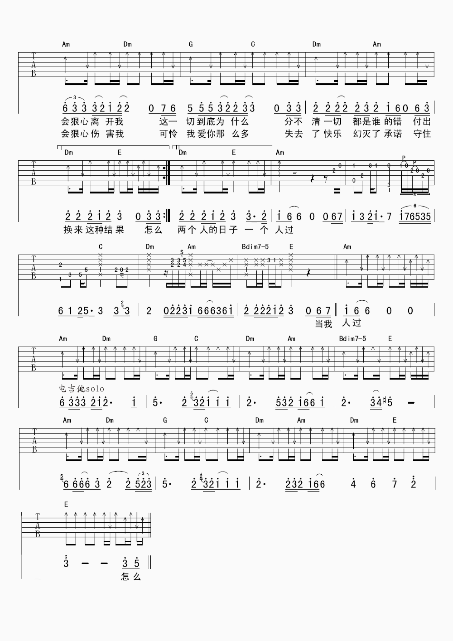 当前位置:琴谱网>吉他弹唱>怎么会狠心伤害我