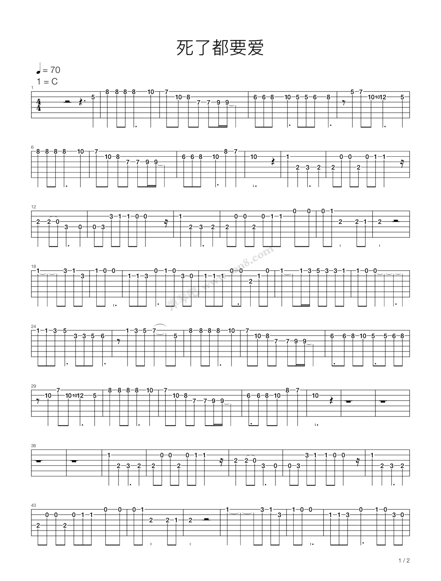 当前位置:琴谱网>吉他独奏>死了都要爱