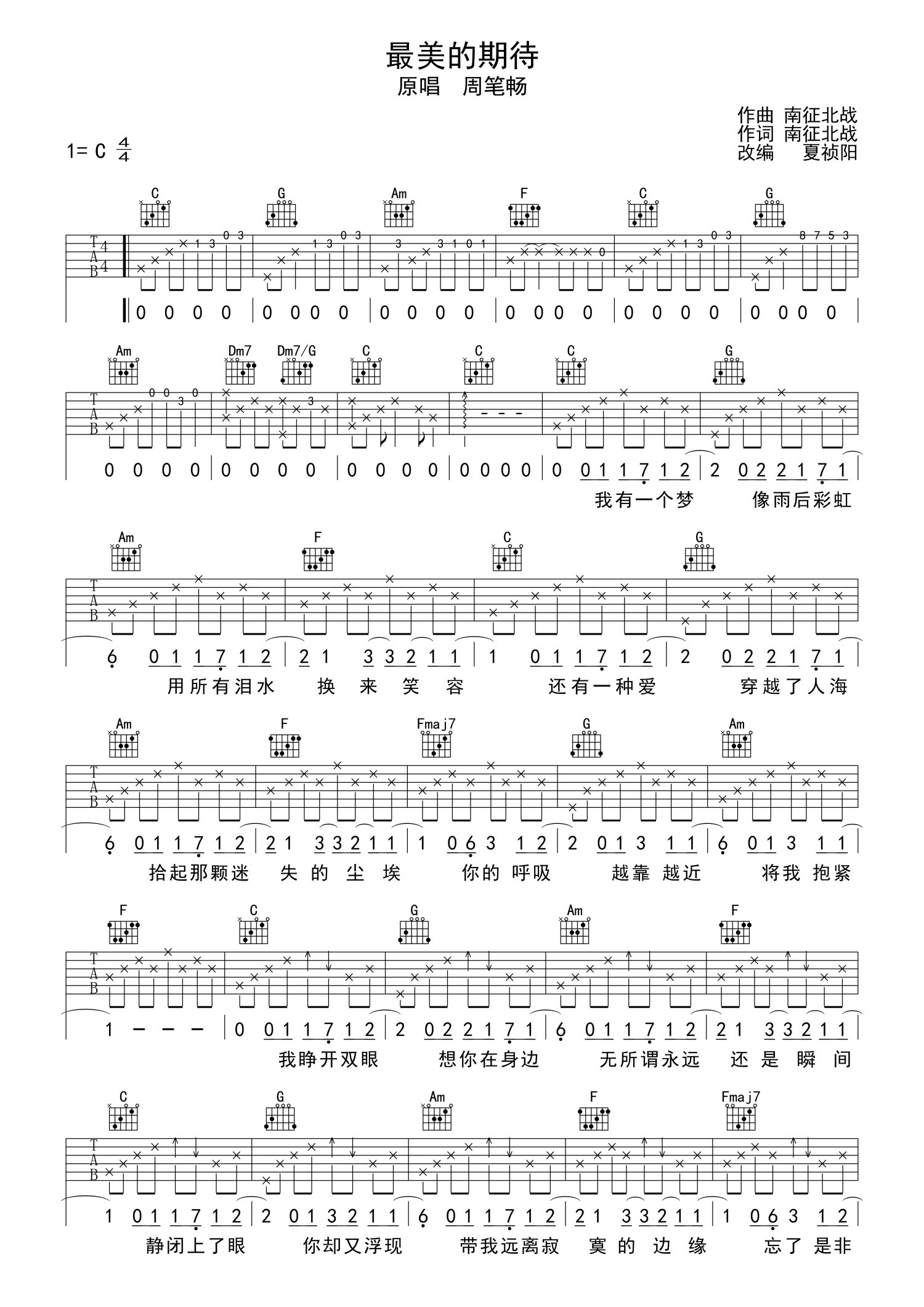 吉他弹唱C调来源:梦马音乐官方--夏祯阳1242 浏览2018-12-15 14:01发布图谱共2页