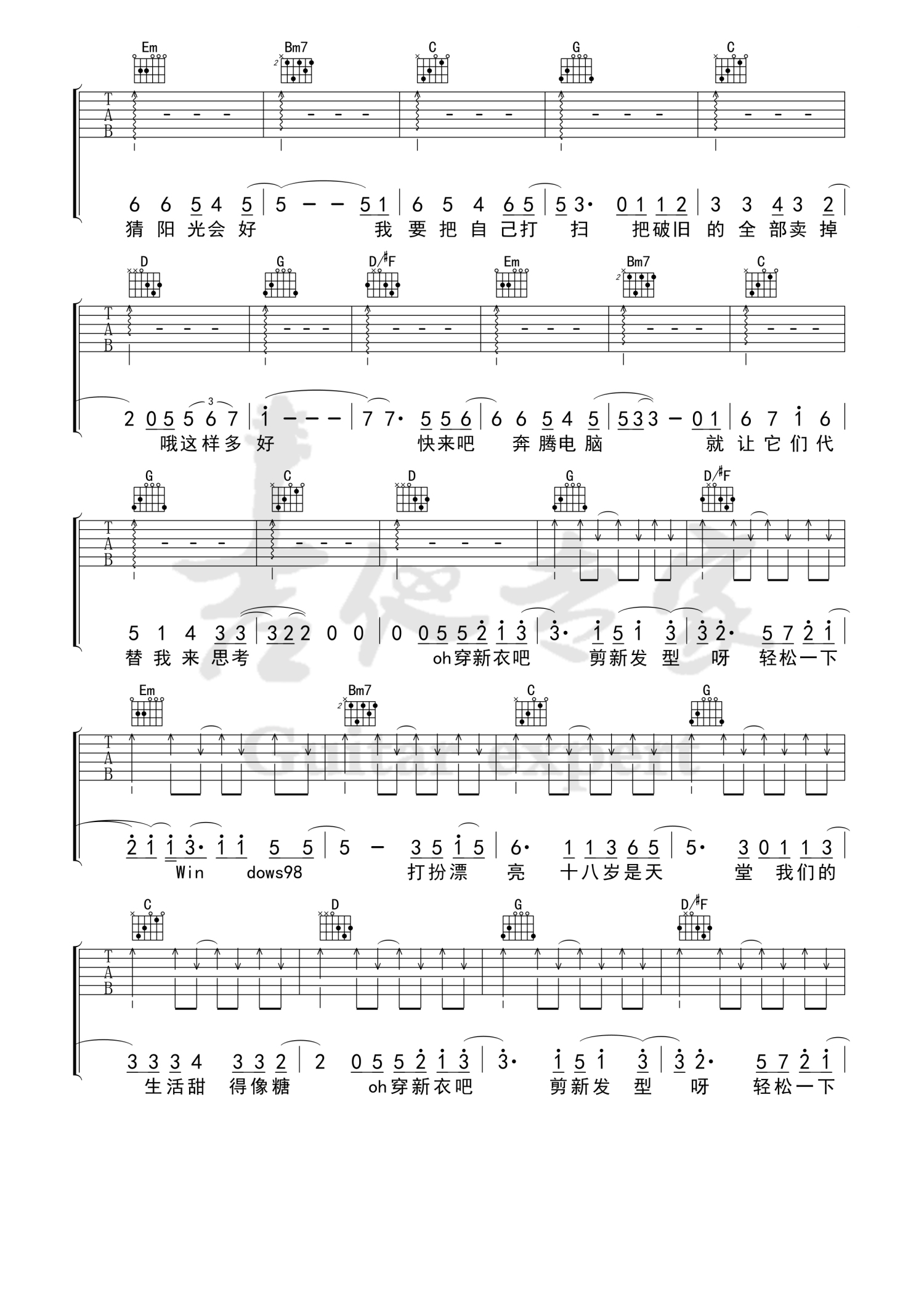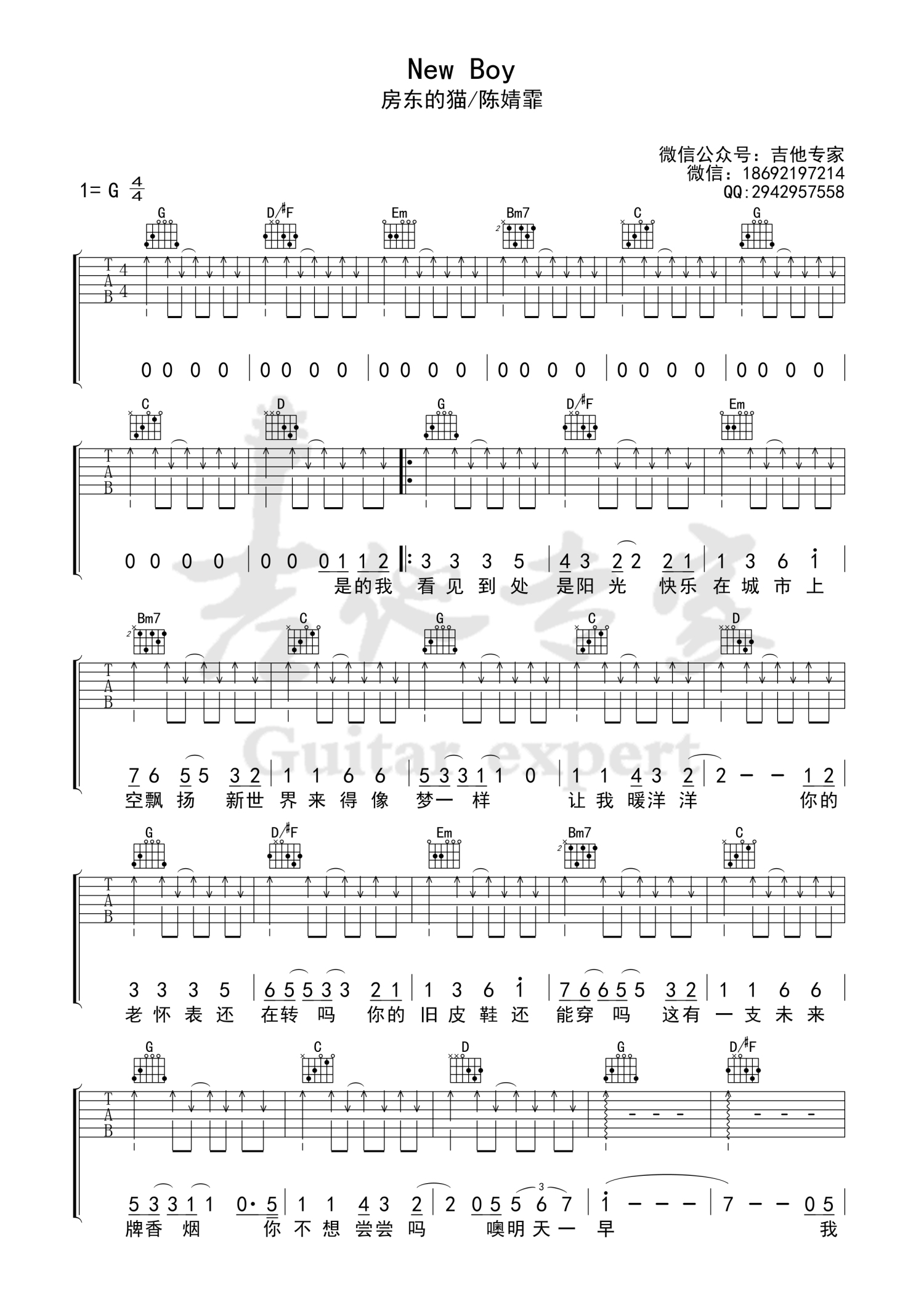 曲谱介绍: 房东的猫《new boy》吉他谱_G调吉他弹唱谱