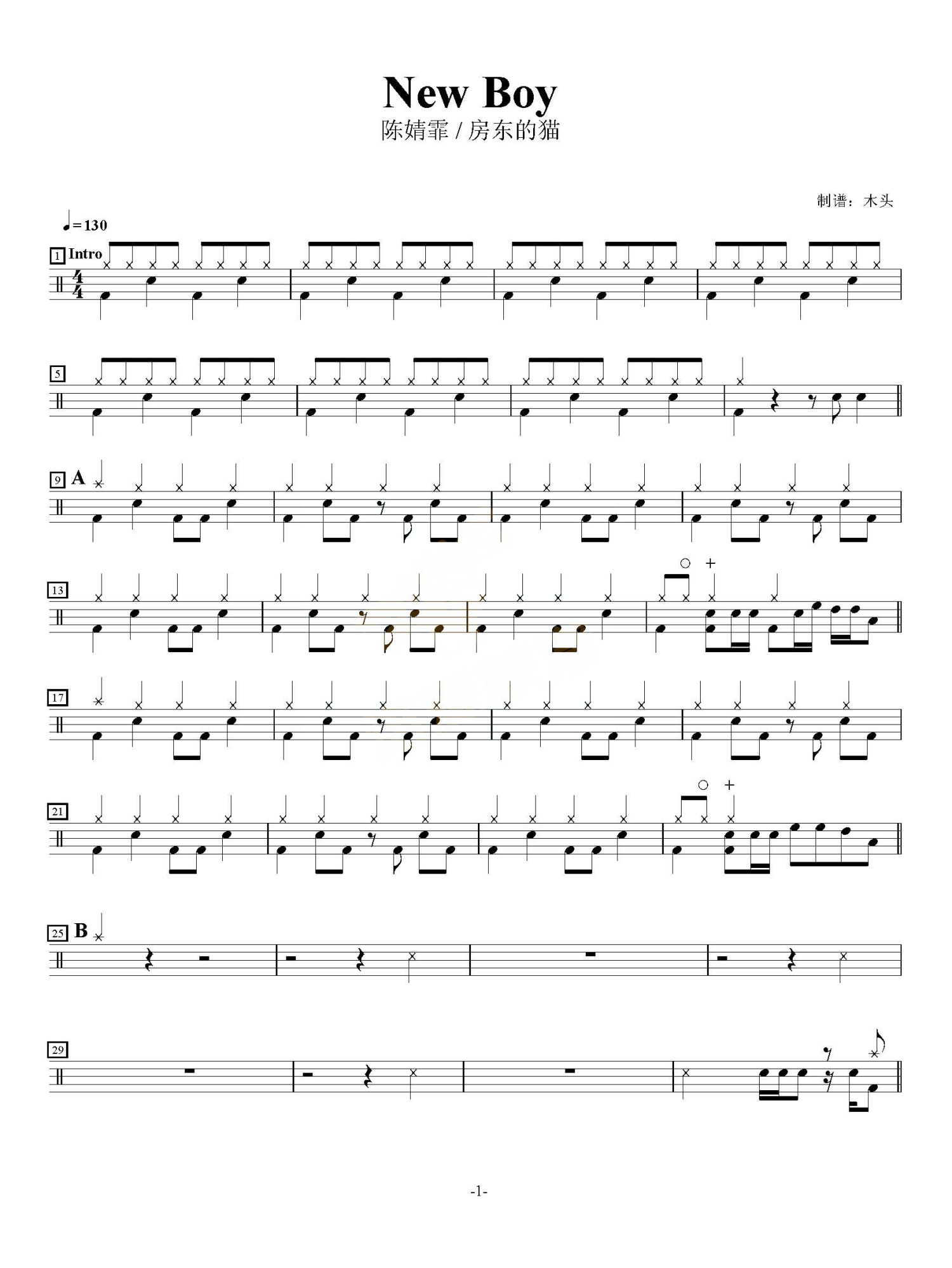 • New Boy鼓谱 - 房东的猫 - 架子鼓谱第1张