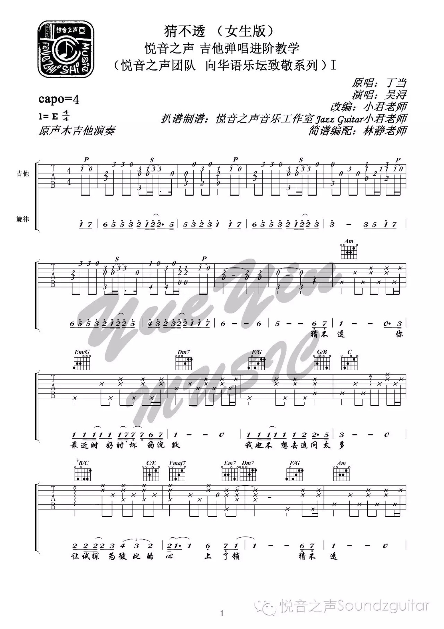 猜不透吉他谱 - 丁当 - 吉他弹唱谱